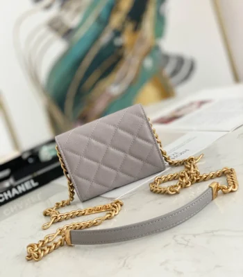 This is a Prada chain flap shoulder bag. Made in grey suede leather. The bag features a silver-tone metal flap