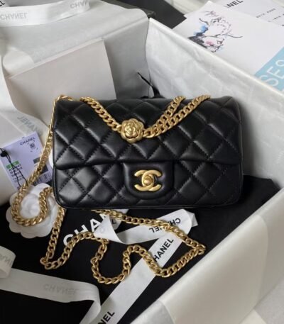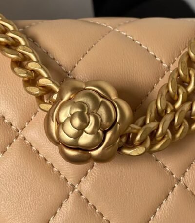 Chanel 23S AS4041 Mini Camellia Embossed Rectangular Flap Bag Antique Gold Metal Hardware Light Pink