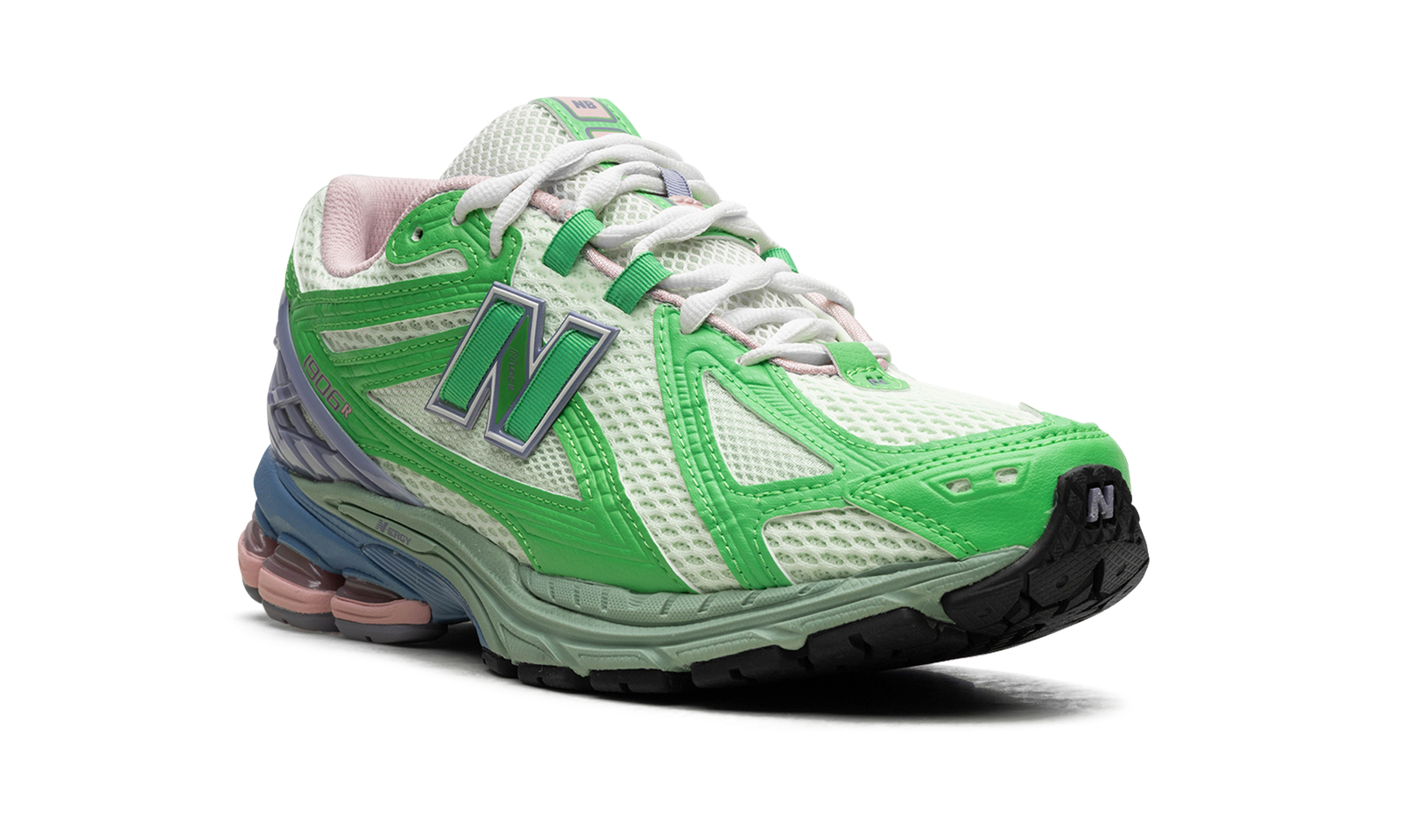 The New Balance 1906R “Green/Astral Purple” is a colorway of the casual shoe with a hard-to-miss green-and-purple color scheme. The New Balance 1906R “Green/Astral Purple” features a white open-mesh construction with Vibrant Green leather overlays and a Astral Purple back “cage” on the heel. A green “N” logo appears on the sides, while “1906R” detailing can be found on the lateral side of the heel. The New Balance 1906R’s N-ERGY cushioned midsole provides optimal comfort.
