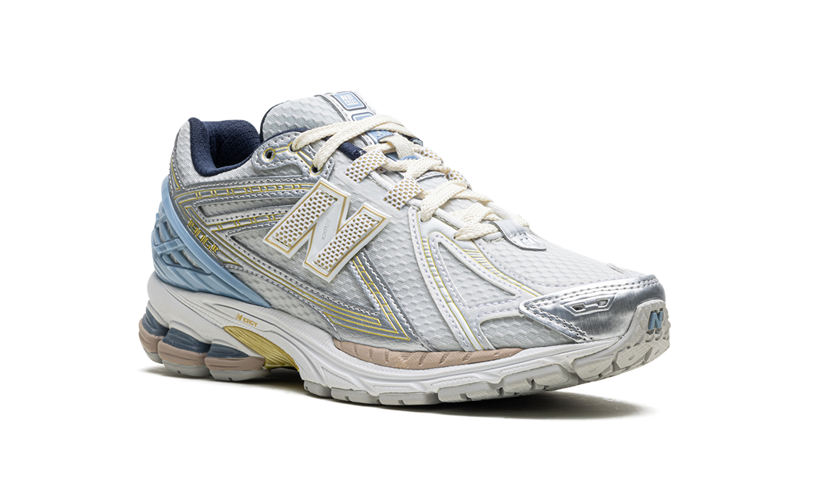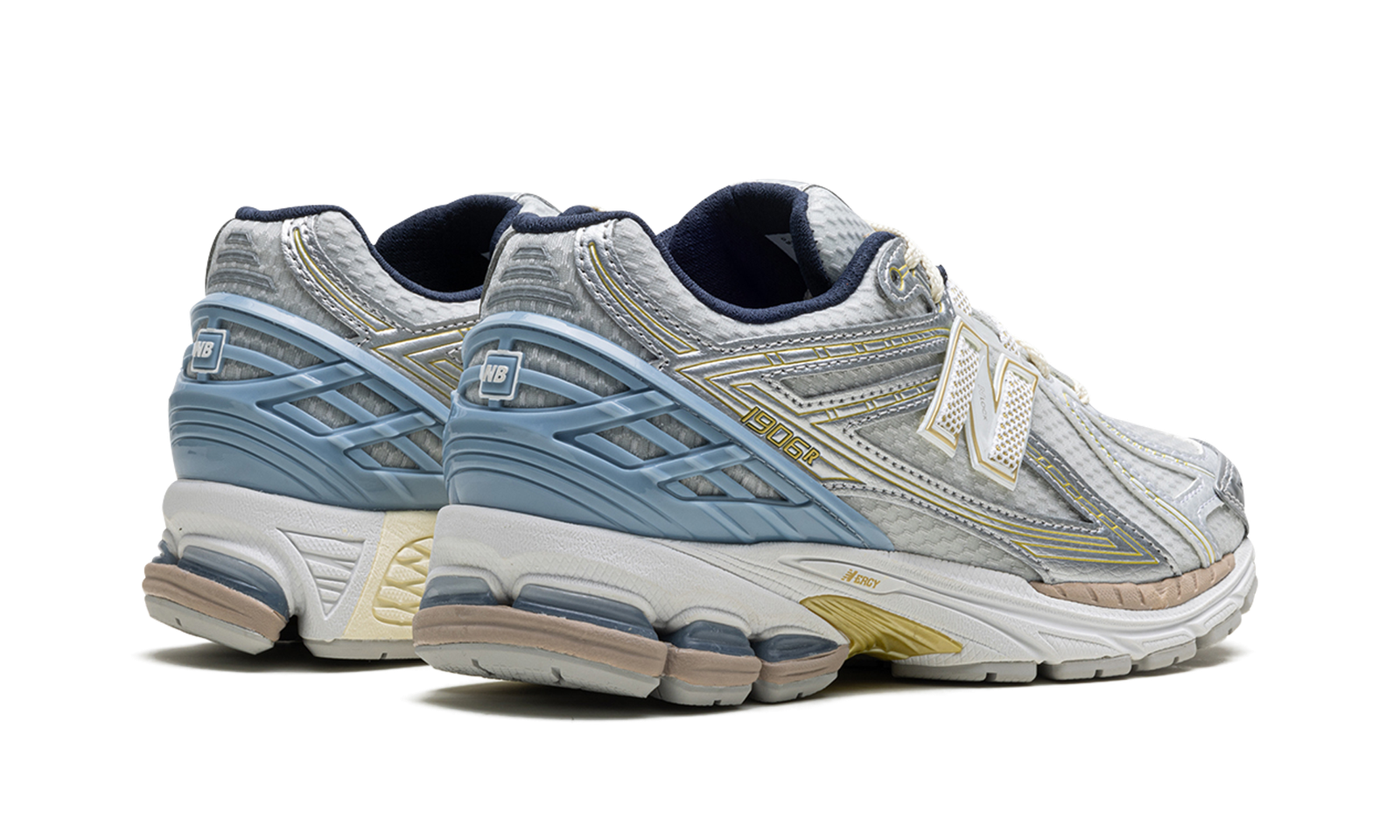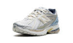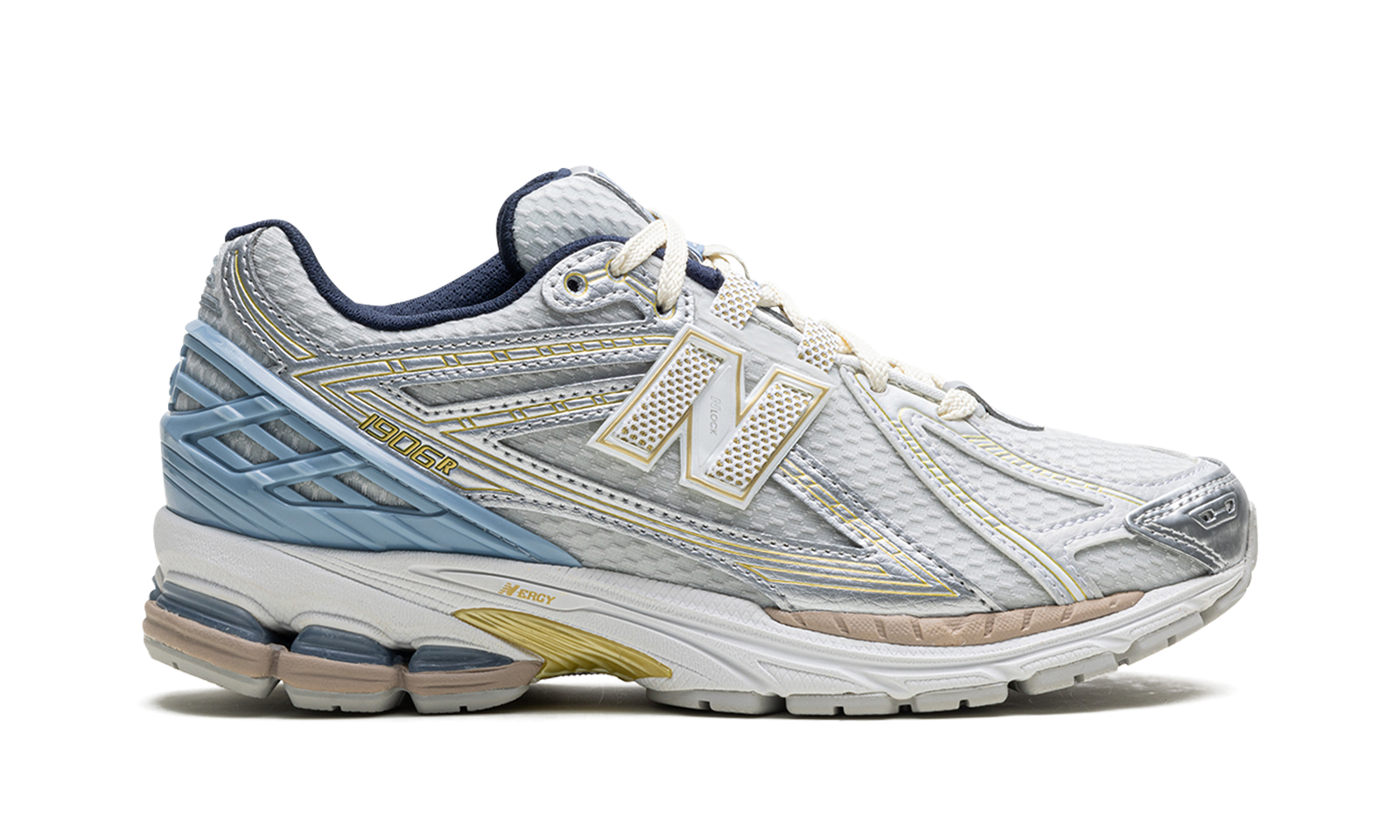 The Kith x New Balance 1906R “White” is one of two colorways of the popular shoe co-designed by Ronnie Fieg and New Balance in 2024. The “White” colorway features a breathable white open-mesh construction with synthetic overlays in a metallic silver finish with gold accents. A white and gold “N” logo can be found on the sides, while a pastel blue molded TPU overlay “cage” provides support on the heel. “NB” and “Kith” branding can be seen on the tongue and on the sockliner. Underfoot, an ACTEVA LITE midsole with New Balance’s comfortable ABZORB and SBS cushioning completes the look. Release date: March 11, 2024
