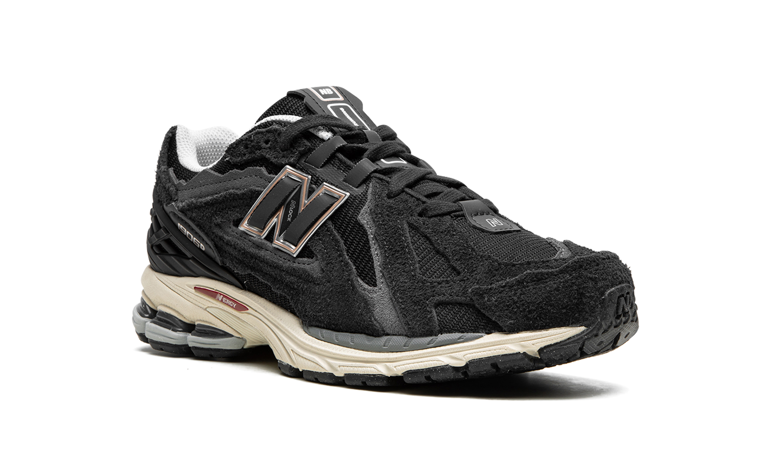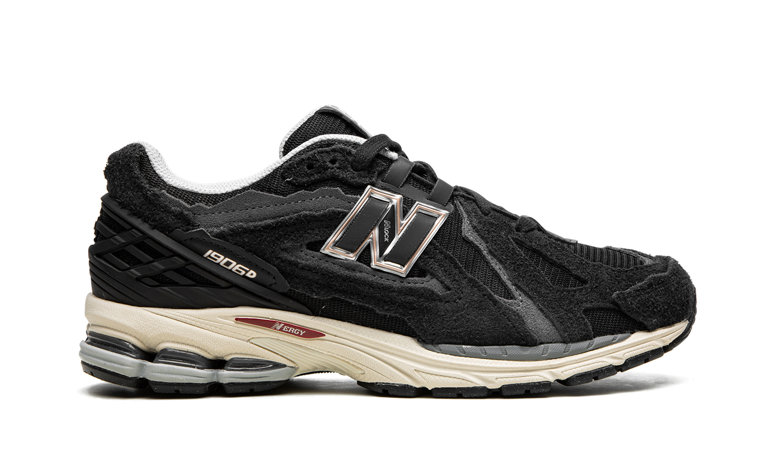 The New Balance 1906R “Protection Pack – Black” is a versatile, black-based colorway of the lifestyle shoe with a retro-looking appearance. New Balance’s “Protection Pack” of 1906R colorways gives the model jagged-cut overlays for a can’t-miss look. For this “Black” colorway, the shoe features a black mesh base with tonal suede overlays. A black “N” logo with silver trim appears on the sides. “1906” branding is printed on the lateral side of the black plastic heel counter. Underfoot, a cream rubber N-ergy cushioned midsole and black rubber outsole complete the look. Release date: January 6, 2023