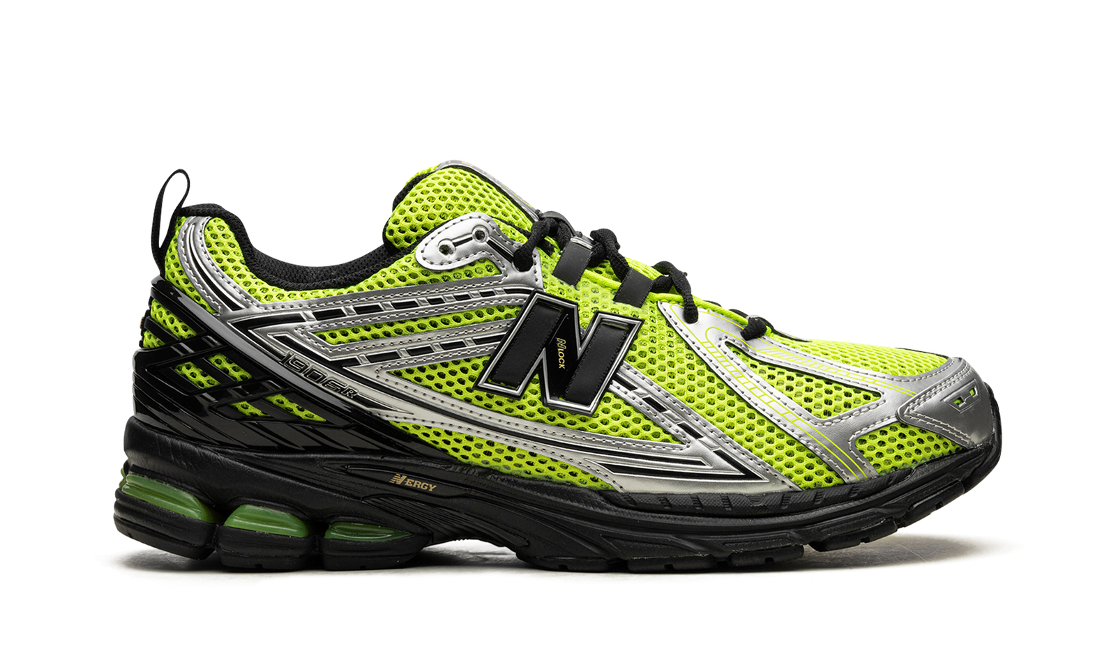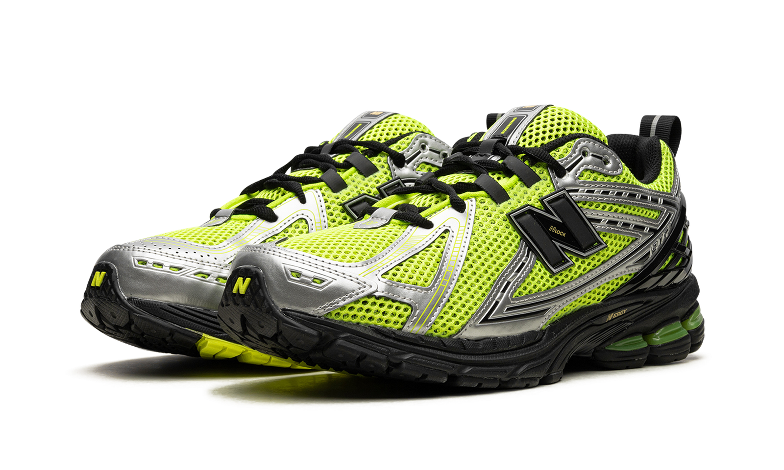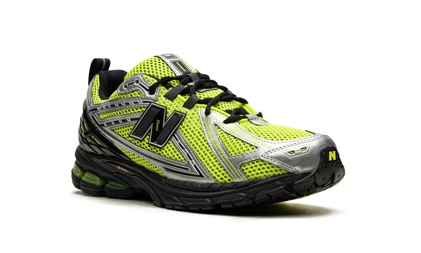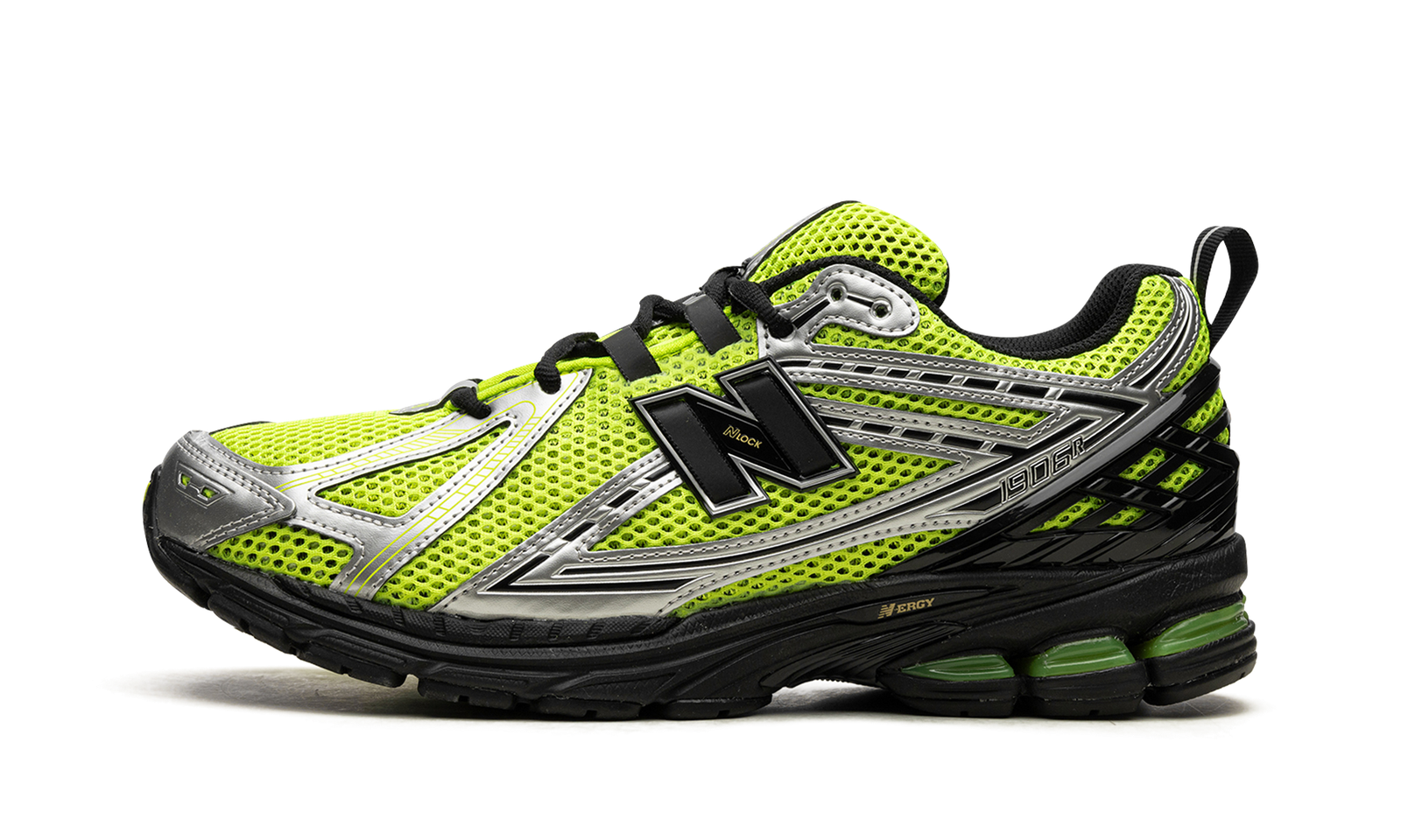 The New Balance 1906R “Volt” is a colorway of the contemporary lifestyle shoe with an eye-grabbing color block. The “Volt” 1906R features a neon green open mesh base with tonal and white synthetic overlays. A futuristic black “N” logo appears on both sides. Black laces contrast the Volt-colored mesh tongue. Black synthetic overlays on the heel counter provide a supportive fit. Underfoot, the N-ergy cushioned foam midsole in black completes the look.