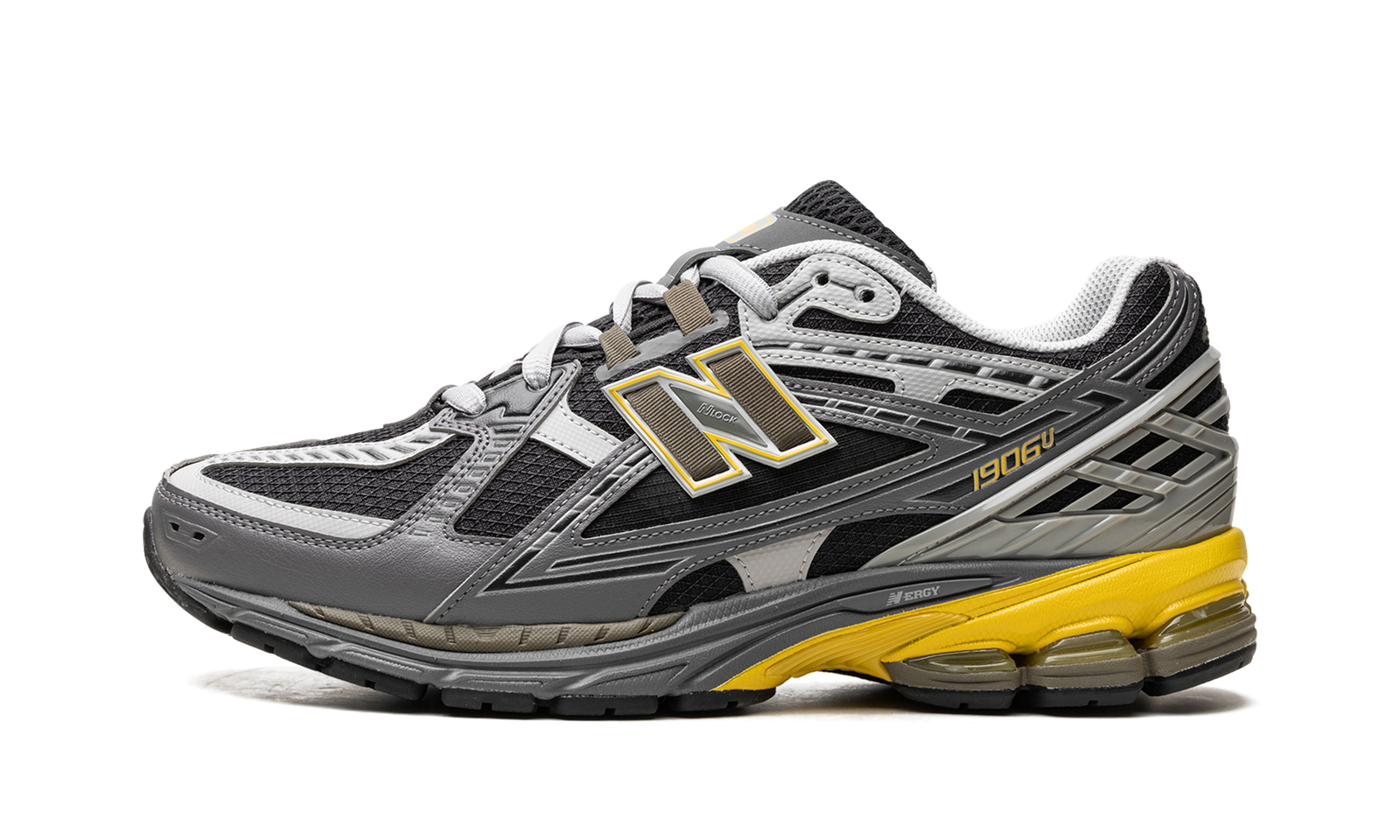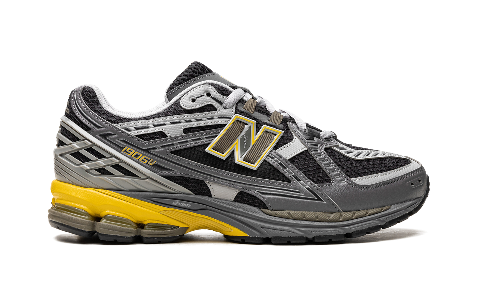 The New Balance 1906U “Castlerock/Ginger Lemon” is a grey-based colorway of what New Balance calls the “utility” version of the retro shoe. The New Balance 1906U has a rugged design for utilitarian purposes, as the shoe features a diamond-grid ripstop base instead of the standard New Balance 1906R’s mesh construction. As for the “Castlerock/Ginger Lemon,” the shoe has a black ripstop base contrasted with light and dark grey synthetic overlays. Ginger Lemon accenting appears on the outline of the “N” logo on the sides, and on the other branding found throughout the shoe. An N-ergy midsole provides optimal comfort.