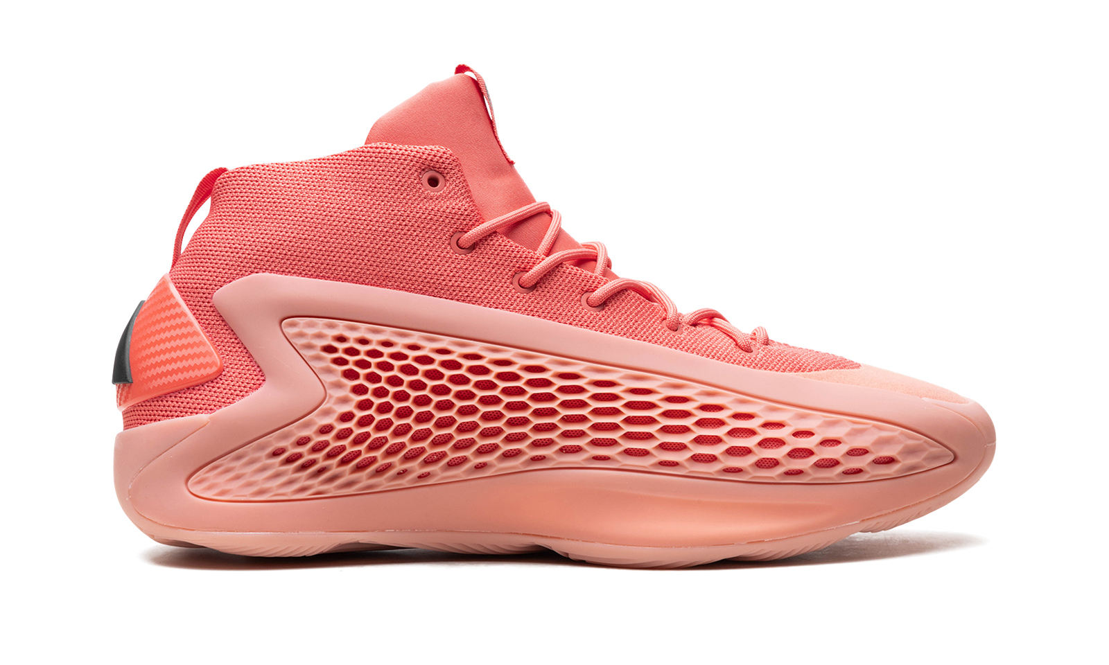 The adidas AE1 “Coral” is a monochromatic pink colorway of Anthony Edwards’ first signature shoe with adidas Basketball. A spring and summer-inspired look with its bright appearance, the upper features a Coral-colored knit upper paired with a TPU “cage” in a honeycomb pattern in a slightly lighter shade of Coral. Edwards’ signature branding appears on the tongue tag and adidas Three Stripes branding can be found on the heel. Underfoot, the midsole is designed with a combination of adidas’s Boost and Lightstrike cushioning for superior performance and energy return. Release date: April 4, 2024