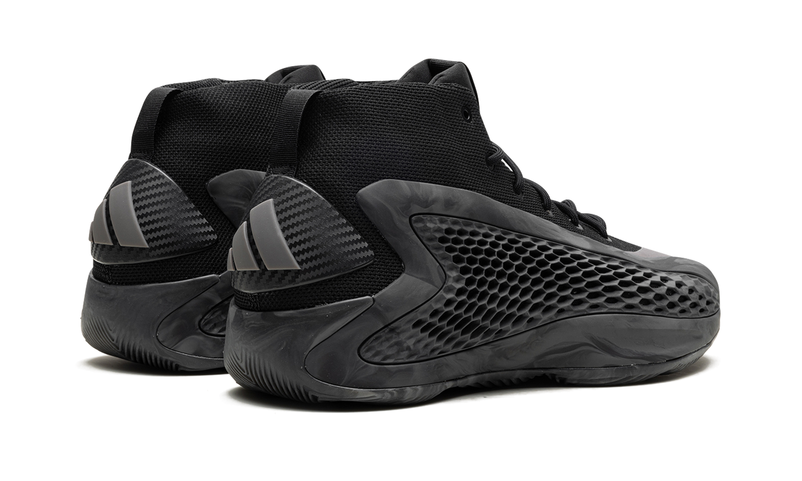 The adidas AE1 “MX Charcoal” is a dark-colored makeup of NBA star Anthony Edwards’ first signature shoe with adidas Basketball. On the “MX Charcoal,” the upper of the shoe features a black knit textile base with a grey marbled TPU “cage” with perforations in a honeycomb pattern that assist in breathability. Edwards’ signature branding appears on the woven tongue tag, while adidas Three Stripes branding can be found on the heel. Underfoot, the midsole is designed with a combination of adidas’s Boost and Lightstrike cushioning for superior performance and energy return. Release date: August 2024