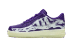 The Nike Air Force 1 Low “Purple Skeleton” is the Halloween 2021 edition of the spooky and festive colorway of the iconic lifestyle silhouette by Nike. The “Purple Skeleton” succeeds the “White,” “Black,” and “Orange” colorways that were released in 2018, 2019, and 2020, respectively, in celebration of Halloween. The upper features the same glow-in-the-dark Halloween aesthetic with a graphic of the bones of the foot appearing on either side of the upper. Court Purple leather forms the base. Tonal Swoosh detailing can be found underneath the anatomic design on the mid-panel and black “Nike Air” embroidery is found on the heel. Nike replicates the same skeleton graphic on the insoles. All previous “Skeleton” colorways feature a glow-in-the-dark outsole, and the 2021 version also utilizes the glowing rubber throughout the entire midsole and outsole. Release date: October 28, 2021.