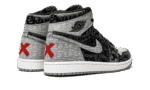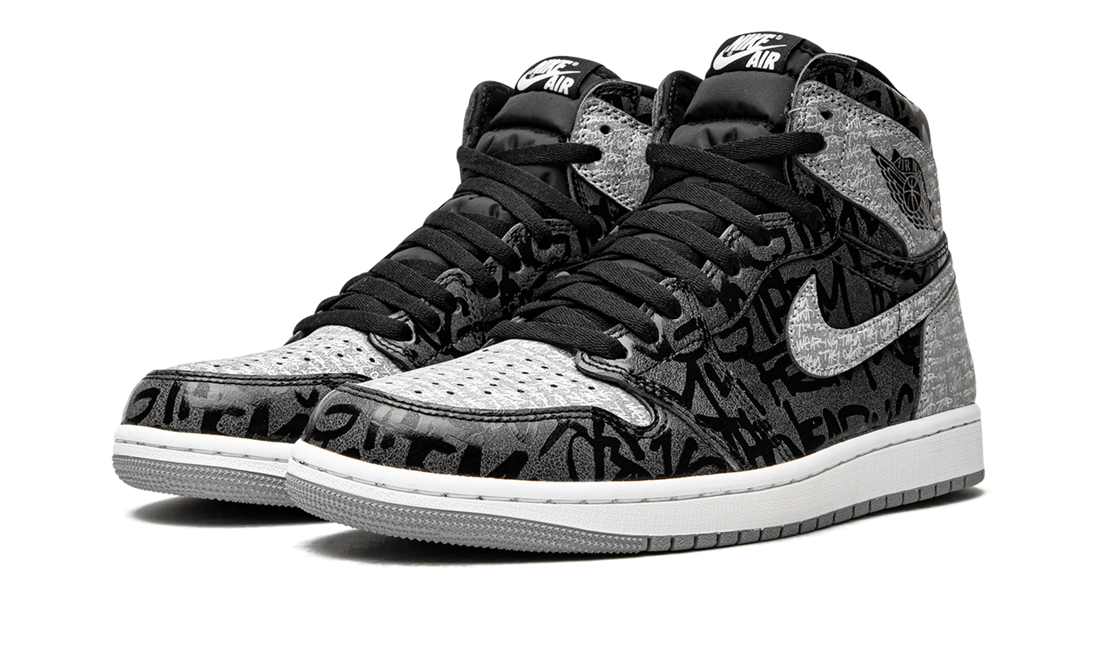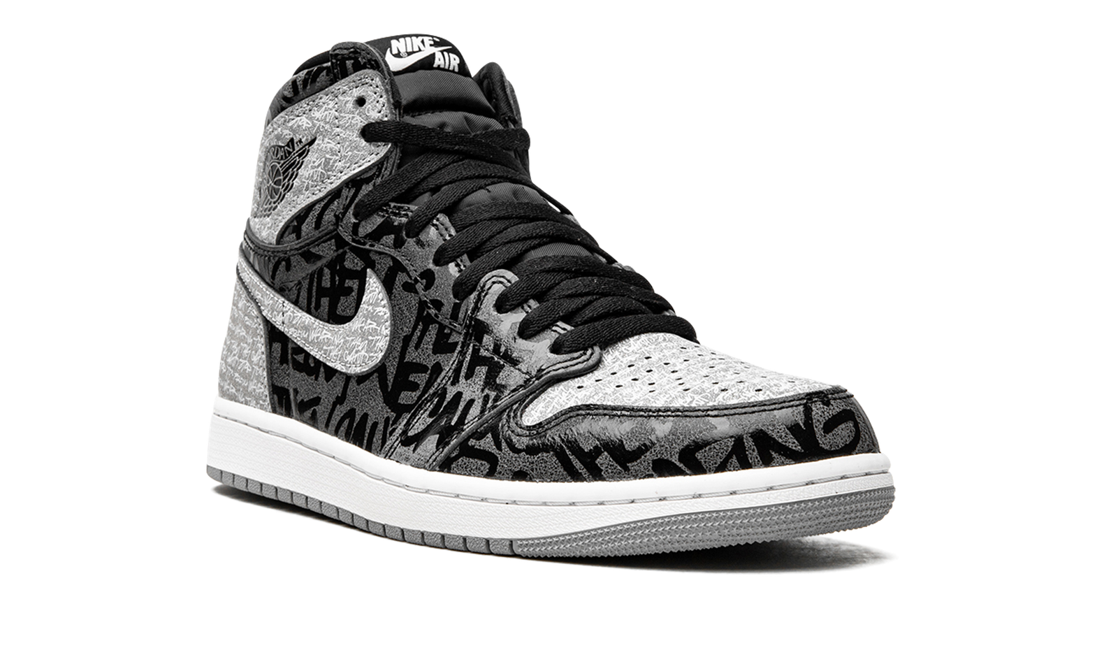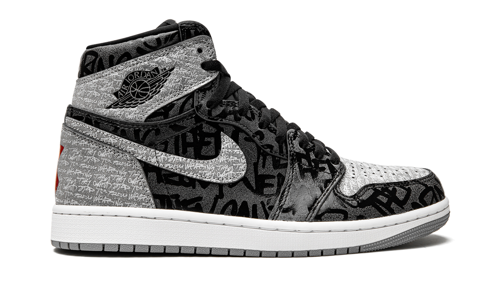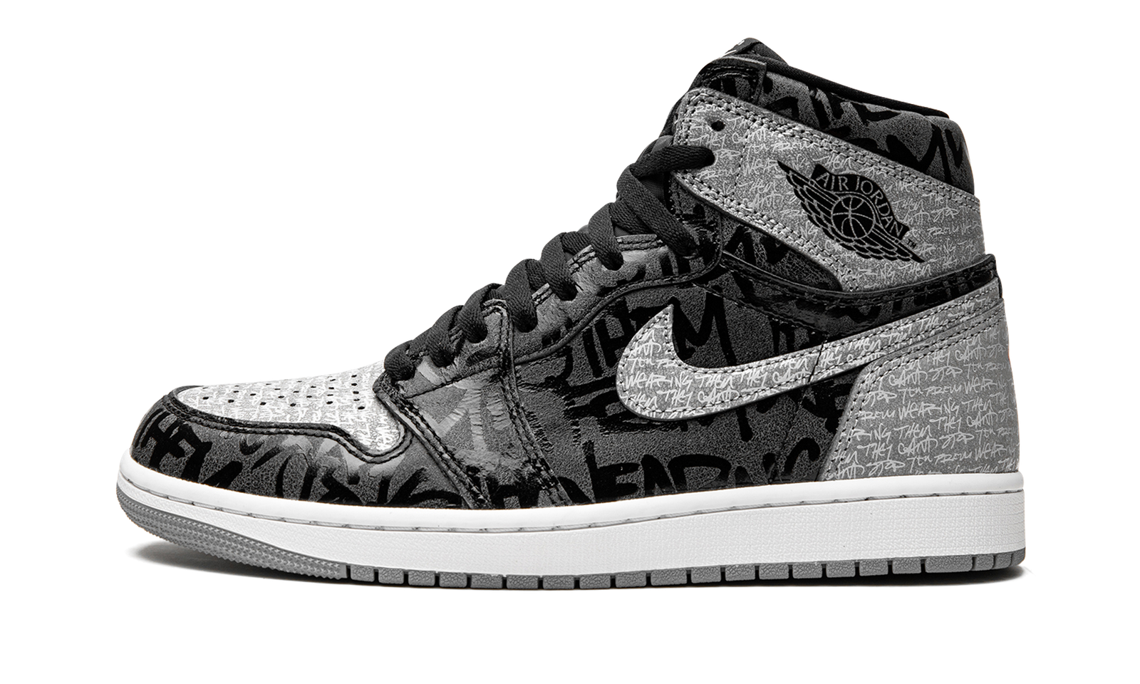 The Air Jordan 1 High OG “Rebellionaire” is a unique colorway of the vintage basketball shoe that draws inspiration from Nike’s 1985 “Banned” commercial, specifically the advertisement’s “They Can’t Stop You From Wearing Them” slogan. A March 2021 release, the “Rebellionaire” arrives in the same color block as the Jordan 1’s original “Shadow” colorway, with the addition of distressed leather panels and lettering printed throughout the design. The grey leather panels on the perforated toe, collar, heel, and Swoosh on either side feature “They Can’t Stop You From Wearing Them” print inspired from the aforementioned Jordan 1 “Banned” commercial. Red “X’s” are found on the heel in a look similar to the Air Jordan 1 High OG “Banned.” Graffiti-style branding is printed on the black leather overlays. Release date: March 12, 2022