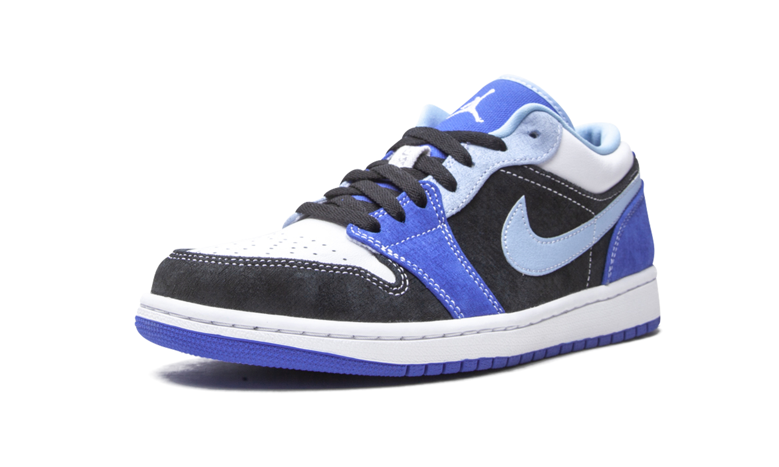 The Air Jordan 1 Low SE “Racer Blue” is one of the more unique colorways of the low-top version of Michael Jordan’s first signature shoe. The “Racer Blue” theme was used on the Air Jordan 9 of the same nickname from January 2020, though in a more subtle manner when compared to the bespoke-style, patchwork design of the shoe seen here. Racer Blue suede appears on the forefoot and heel. The deep royal blue hue can be found on the canvas tongue, as well. A dusty University Blue suede Swoosh and upper eyelet panel contrast the black suede mid-panel and toe cap. Embroidered “Wings” and Jumpman branding can be found on the heel and the tongue, respectively. A white canvas overlay with “23” embroidery contrasts the black shoe laces. Jordan Brand finishes off the design with a white midsole and Racer Blue outsole.