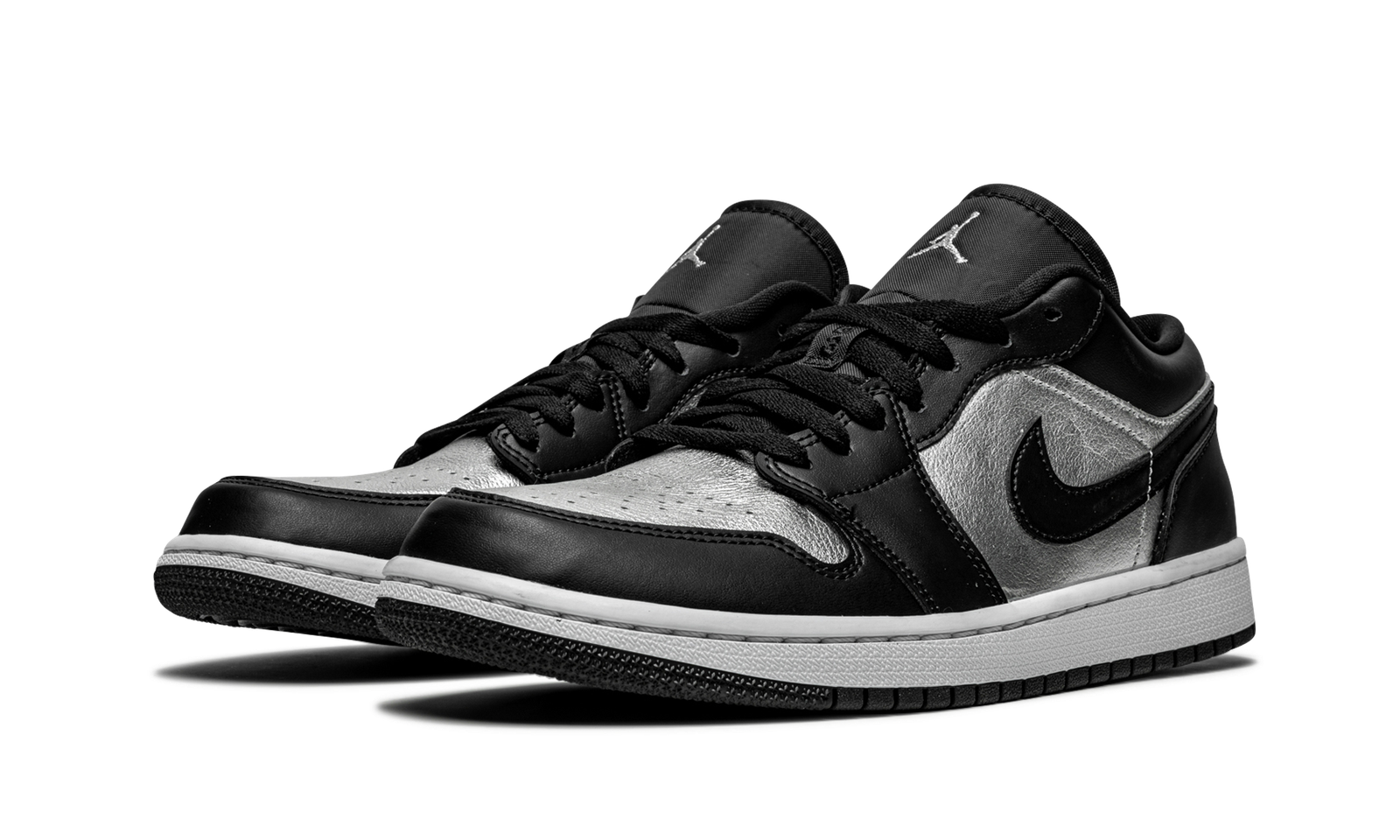 The Women’s Air Jordan 1 Low SE “Silver Toe” is the women’s sizing of Michael Jordan’s first signature shoe in a flashy colorway inspired by space exploration. In February 2021, Jordan Brand released the popular “Silver Toe” colorway on the Jordan 1 High with the alternate Jordan 1 Low following soon after. Both versions of the colorway draw comparisons to Kawhi Leonard’s “Think 16” Jordan 1 from 2018 and the original “Shadow” makeup from 1985. Here, crinkled silver leather can be found on the perforated toe and on the mid-panel. Black leather overlays on the forefoot, eyelets, collar, and heel balance out the look. A black leather Swoosh appears on either side of the shoe and a grey “Wings’ graphic is printed on the heel. The same neutral hue marks the embroidered Jumpman logo stitched onto the black nylon tongue.