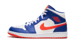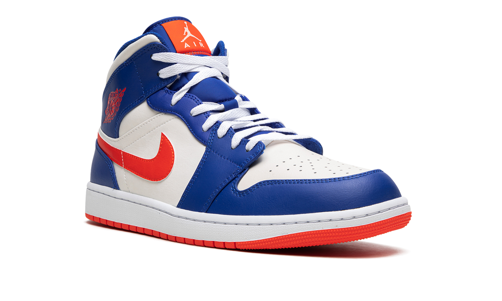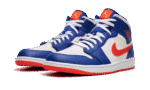 The Air Jordan 1 Mid “Knicks” is a colorway of the casual sneaker that features the team uniform colors of the New York Knicks. The “Knicks” Jordan 1 Mid is not officially associated with the basketball team, but still features its uniform colors on its design in an intriguing way. The shoe sports a white leather base with Game Royal leather overlays on the toe, forefoot, eyelets, collar, and heel. A Rush Orange leather Swoosh is found on either side of the shoe and orange “Wings” branding appears on the collar. The Rush Orange nylon tongue tag features Jumpman and “Air” detailing. Underfoot, the white midsole is paired with an orange rubber outsole. Release date: February 17, 2023