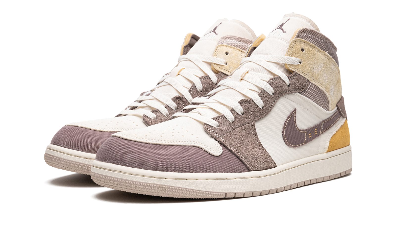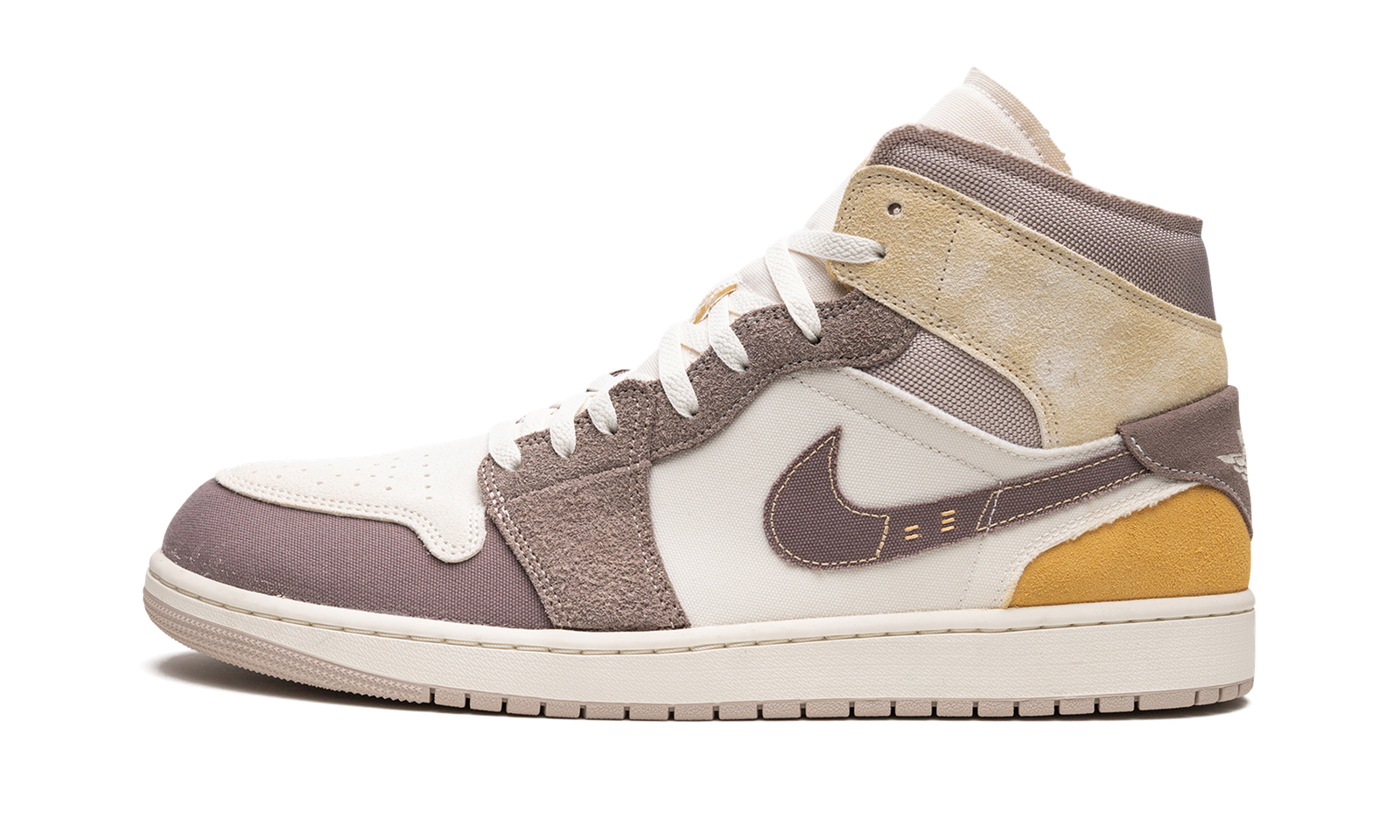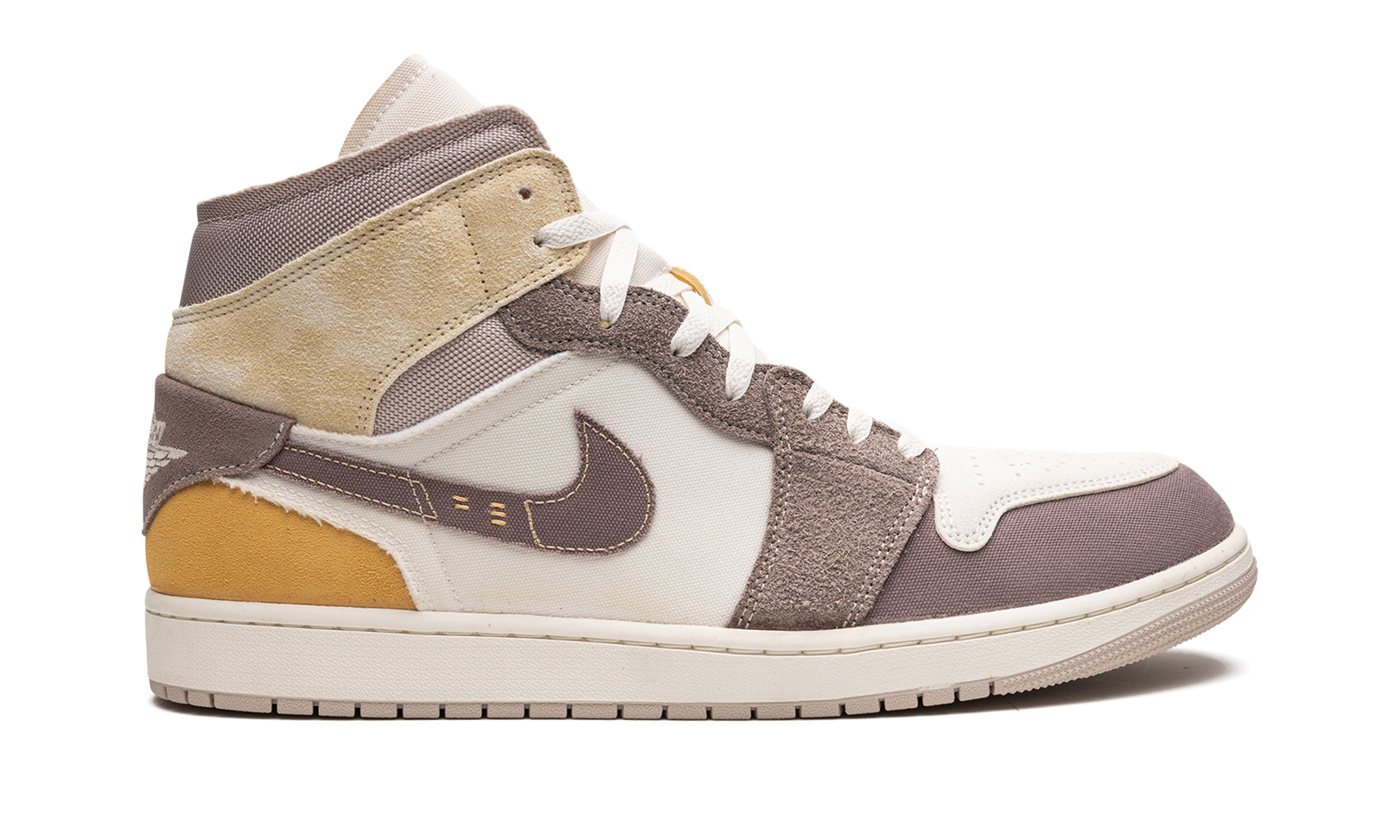 The Air Jordan 1 Mid SE Craft “Taupe Haze” is an alternate version of the popular shoe that updates its design with an “inside-out” look. The “Taupe Haze” gives the Jordan 1 Mid Craft a progressive design with mismatched panels in various textiles. Sail-colored canvas can be found on the perforated toe and mid-panel while Taupe Haze suede appears on forefoot and eyelet overlays. The grey hue also graces the toe cap and heel. A Taupe Haze Swoosh is found on the sides. An overlay panel with “Wings” branding is located on the back of the shoe, moved from its placement on the collar on the Air Jordan 1 Mid’s original design.