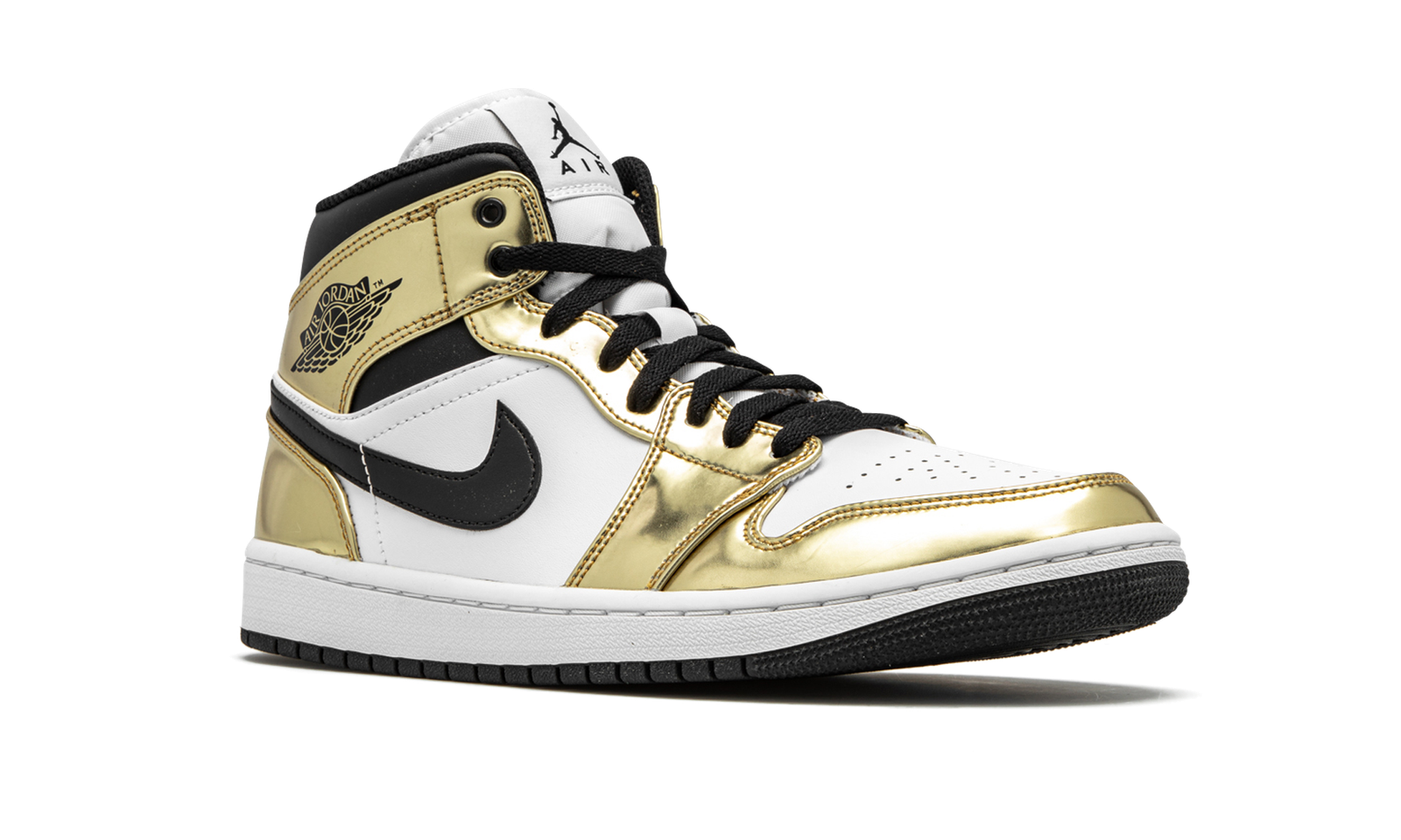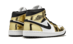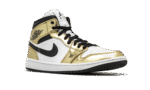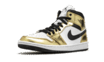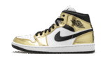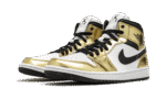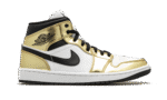 The Air Jordan 1 Mid SE “Metallic Gold” is a flashy colorway of Michael Jordan’s legendary first signature shoe in its mid-top version. Released in November 2020, the Special Edition (SE) “Metallic Gold” continues both Nike and Jordan Brand’s love for the luxurious metallic theme, having previously been used on iconic models such as the Air Force 1, Air Max 1, and Jordan 1. As for the design of this shoe, smooth white leather panels on the perforated toe and mid-panel form the base of the upper. Metallic Gold leather overlays come into play on the forefoot, eyelets, collar, and heel, cutting a premium look for the Jordan 1 Mid. Elsewhere, a black leather Swoosh appears on either side and a black “Wings” logo can be found on the collar. Black shoe laces sit on top of the white nylon tongue that features a white nylon tongue tag with classic Jumpman detailing. The Air Jordan 1 Mid SE “Metallic Gold” is a Holiday 2020 release from Jordan Brand. Release date: November 30, 2020.
