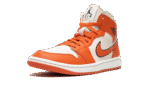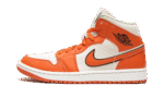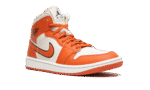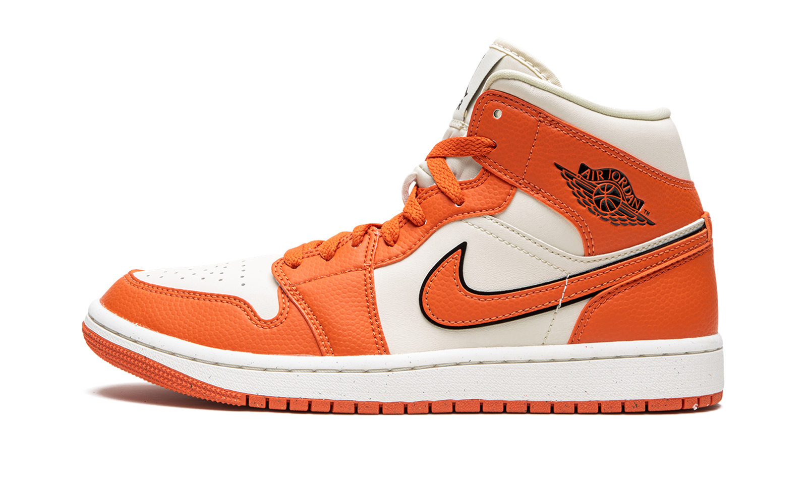The Women’s Air Jordan 1 Mid “Sport Spice” is a women’s-exclusive colorway of the casual shoe with a premium and eye-catching construction. The “Sport Spice” is complete with a Coconut Milk leather base with Sport Spice (orange) leather overlays featuring a pebbled basketball-like texture. An orange leather Swoosh with black trim appears on the sides and “Wings” branding is found on the collar. Classic Jumpman detailing dots the tongue.