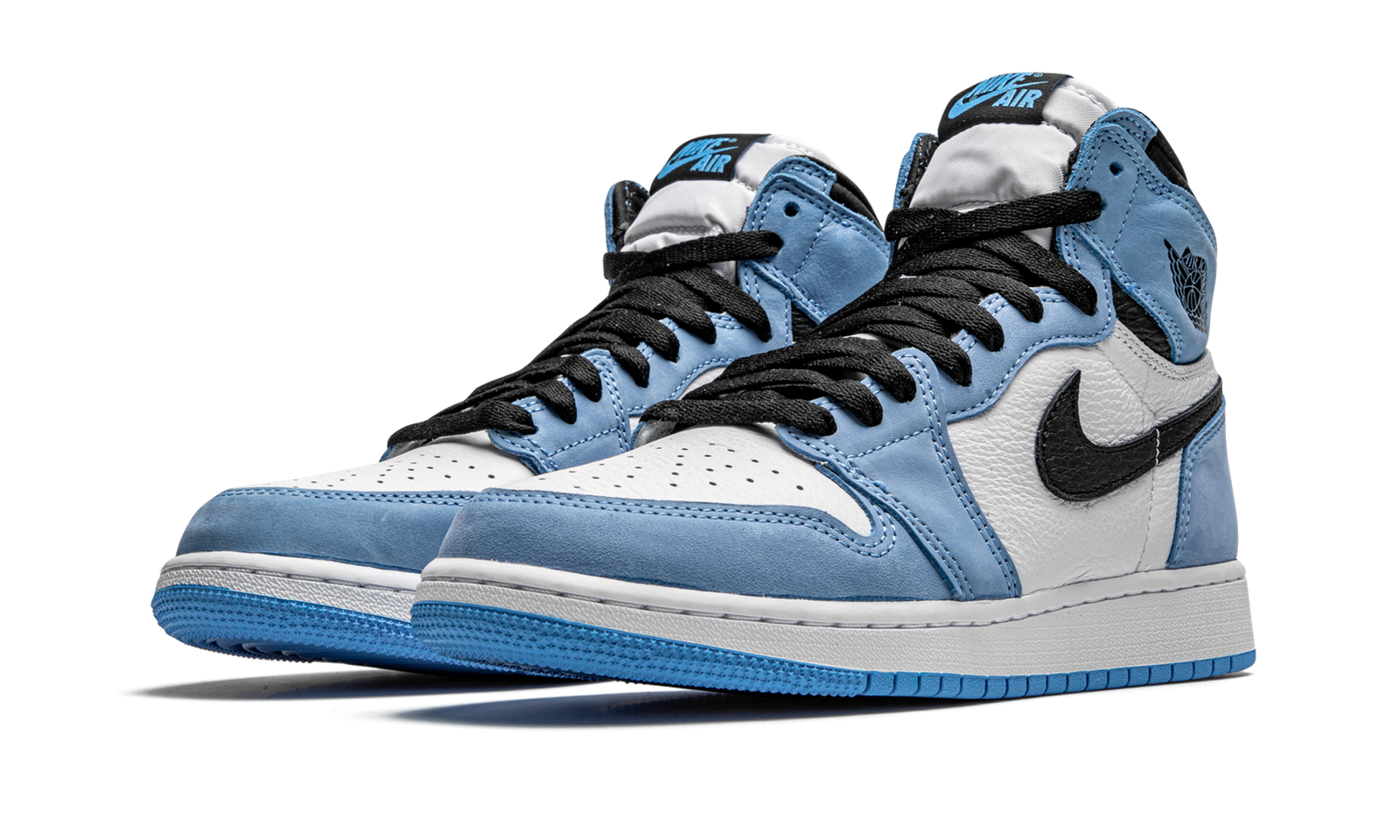 The Air Jordan 1 High GS “University Blue” is the youth sizing of Michael Jordan’s first signature shoe in a colorway that references his alma mater, the University of North Carolina. Fitted in kids sizing, the “University Blue” seen here gives an update to the classic and original “UNC” colorway of the Air Jordan 1 High. The perforated toe and mid-panel display a crisp white tumbled leather construction. Contrasting University Blue suede overlays can be found on the forefoot, eyelets, collar, and heel. A black leather Swoosh is located on either side of the shoe and black “Wings” insignia is printed onto the collar. Jordan Brand gives the “University Blue” a white nylon tongue and tops off the look with a “Nike Air” branded tag for a retro appearance. Black laces and a white midsole and blue outsole round out the look of the Jordan 1 High “University Blue” for kids. Release date: February 20, 2021.