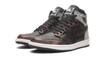 The Air Jordan 1 High OG “Patina” is a premium colorway of Michael Jordan’s first signature shoe that was released in March 2021. Several indirect influences inform the look of the “Patina,” beginning with the grey nubuck overlays on the collar and heel which, combined with the supple black leather on the collar and mid-panel, call to mind the original “Shadow” Jordan 1. The overlays on the forefoot, eyestay, and Swoosh are given an opulent bronzed patina finish that contrasts with the black leather detailing of the perforated toe. A black “Wings” logo adorns the collar and teal “Nike” insignia appears with tonal stitching on the black nylon tongue. Underfoot, a cream rubber midsole and black outsole put the finishing touches on yet another versatile colorway of the Air Jordan 1. Release date: March 10, 2021.