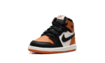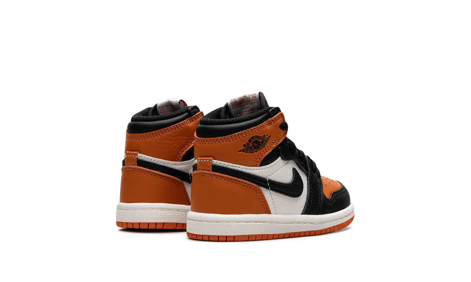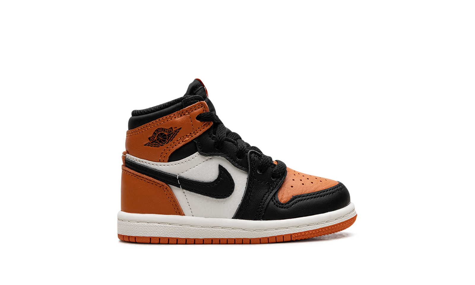 Dress your future legend in the Air Jordan 1 Retro High OG TD “Shattered Backboard.” This Toddler-sized shoe celebrates Michael Jordan’s legendary backboard-shattering dunk in Italy in 1985. The premium leather upper features the iconic Black, Starfish, and Sail colorway, inspired by the jersey MJ wore during the game. This high-top model is built for little feet with soft cushioning, introducing them to a piece of Jordan history and that unmatched, effortless energy.