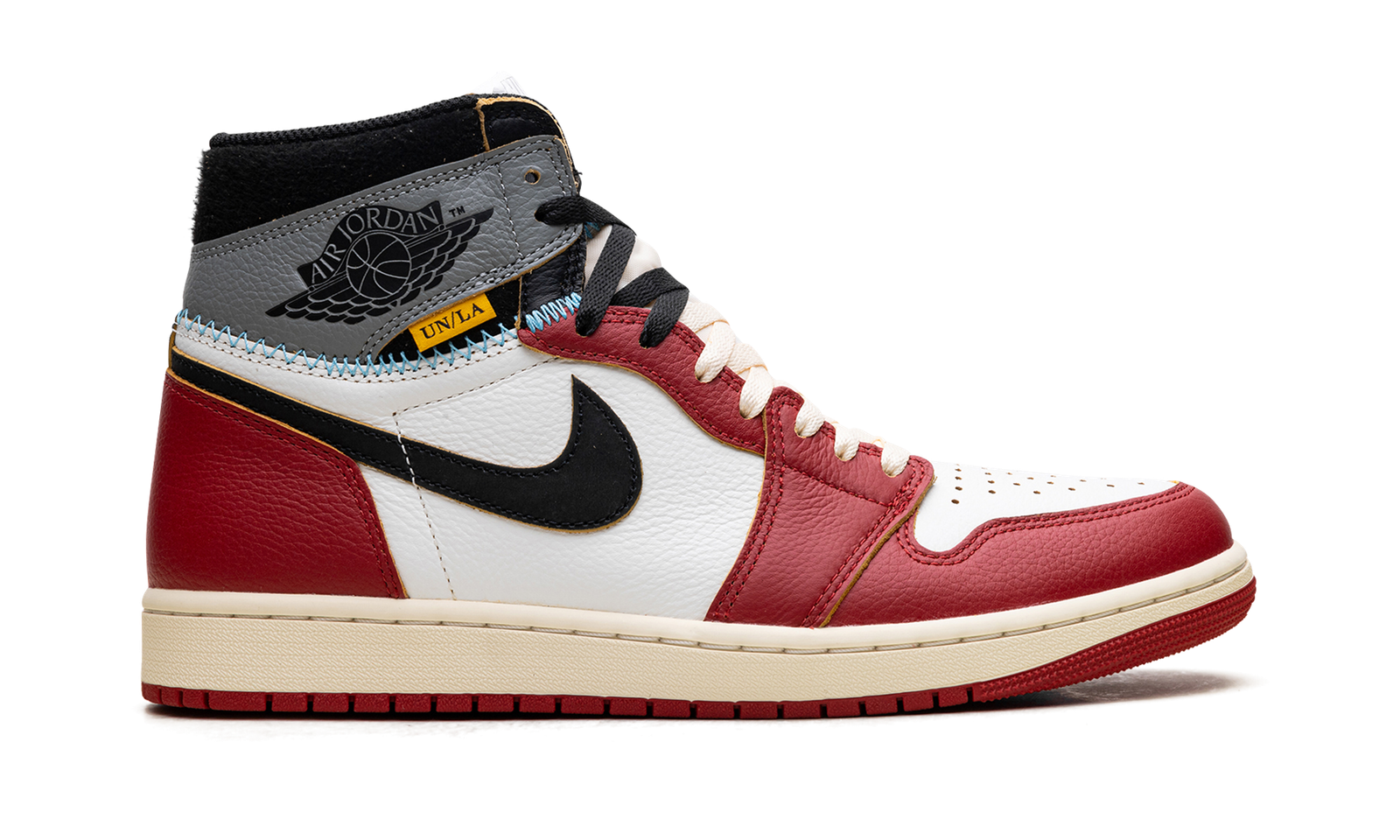 The Union LA x Air Jordan 1 “I’m Back” is a 2025 edition of Union’s collaboration on Michael Jordan’s first signature shoe. Like Union’s other Jordan 1 collaborations, the “I’m Back” combines two popular AJ1 colorways. The base of the upper sports the Jordan 1 “Chicago” colorway with its white and red panels. The ankle is done in the black and grey “Shadow” colorway. The “I’m Back” nickname is a reference to Jordan’s quote in a press release when he came out of retirement in 1995.