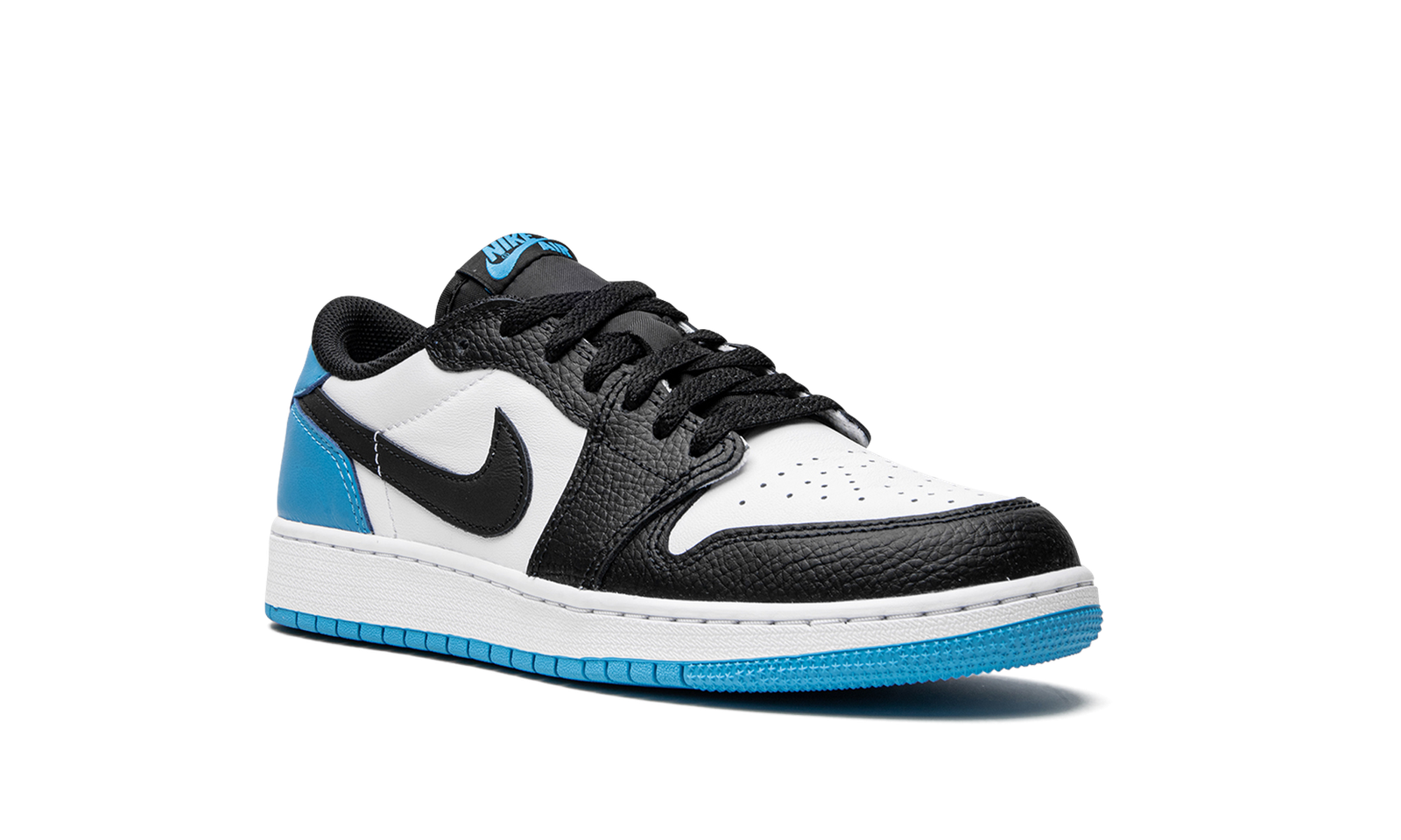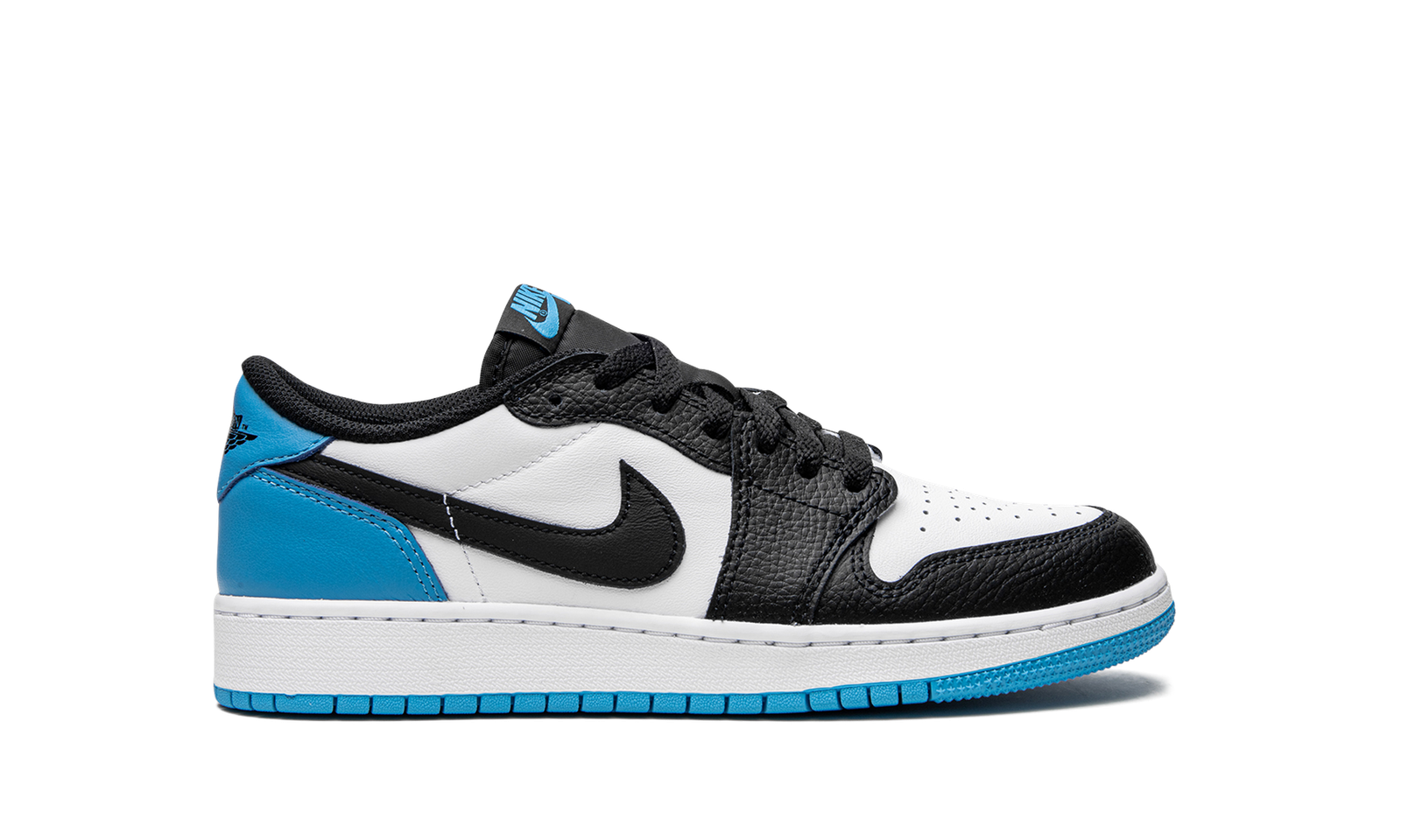 The Air Jordan 1 Low OG GS “UNC” is the youth sizing of the colorway of the low-top retro basketball shoe that shows appreciation for Michael Jordan’s alma mater, the University of North Carolina. The Jordan 1 Low OG GS “UNC” salutes the UNC Tar Heels by featuring the school’s team uniform colors on its design. The Jordan 1 Low OG is based on the original silhouette of the sneaker from 1985, and it features panels and branding that are consistent with the original design. As for this colorway, white leather forms the base of the upper. The overlays and Swoosh branding on the sides are designed in black leather. The heel panel appears in University Blue leather, as does the tab with classic “Wings” branding on the back of the shoe. Release date: July 29, 2022