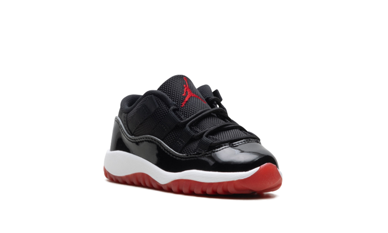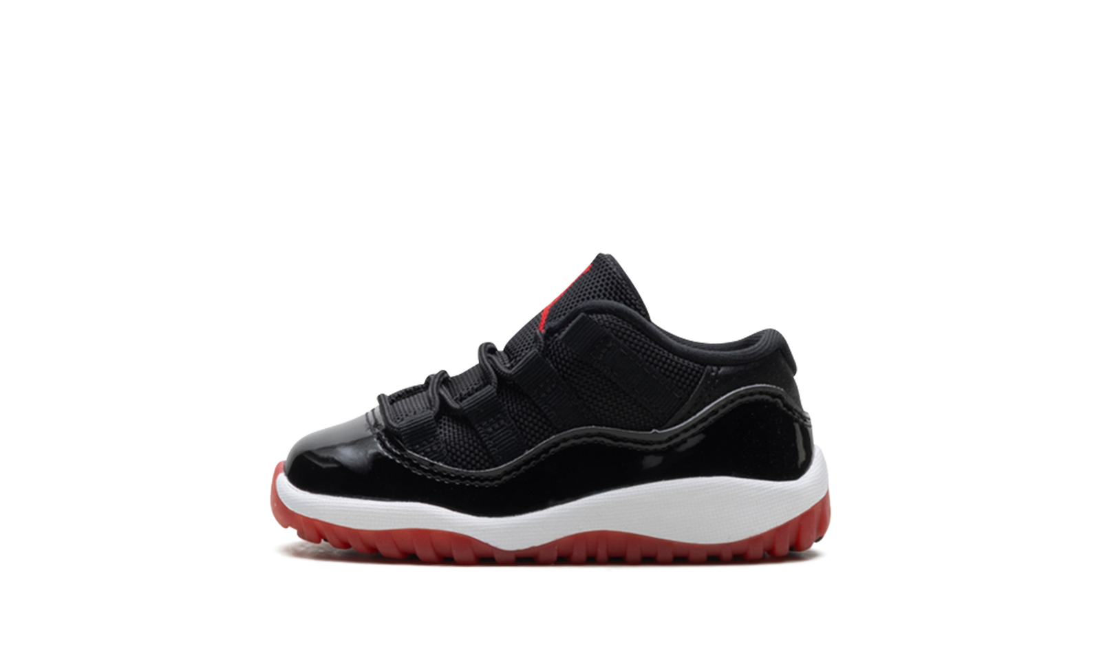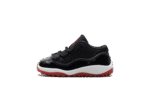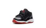 Get your little champion ready for action in the Air Jordan 11 Retro Low TD “Bred.” This toddler-sized version of a legendary Tinker Hatfield design features the iconic Black and Varsity Red “Bred” colorway. The upper boasts the signature glossy patent leather mudguard and black ballistic mesh for that classic, unmistakable look. With a low-cut profile and soft cushioning, this miniature marvel wraps their tiny feet in a piece of Jordan’s championship legacy.