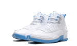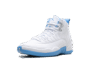 The Air Jordan 12 “Melo 2025” celebrates longtime Jordan Brand athlete Carmelo Anthony. This “Melo” Jordan 12 released in 2025 and gets its color palette from the Denver Nuggets, where Anthony started his NBA career. This AJ12 has a clean white upper that is accented with light blue on the outsole and heel.