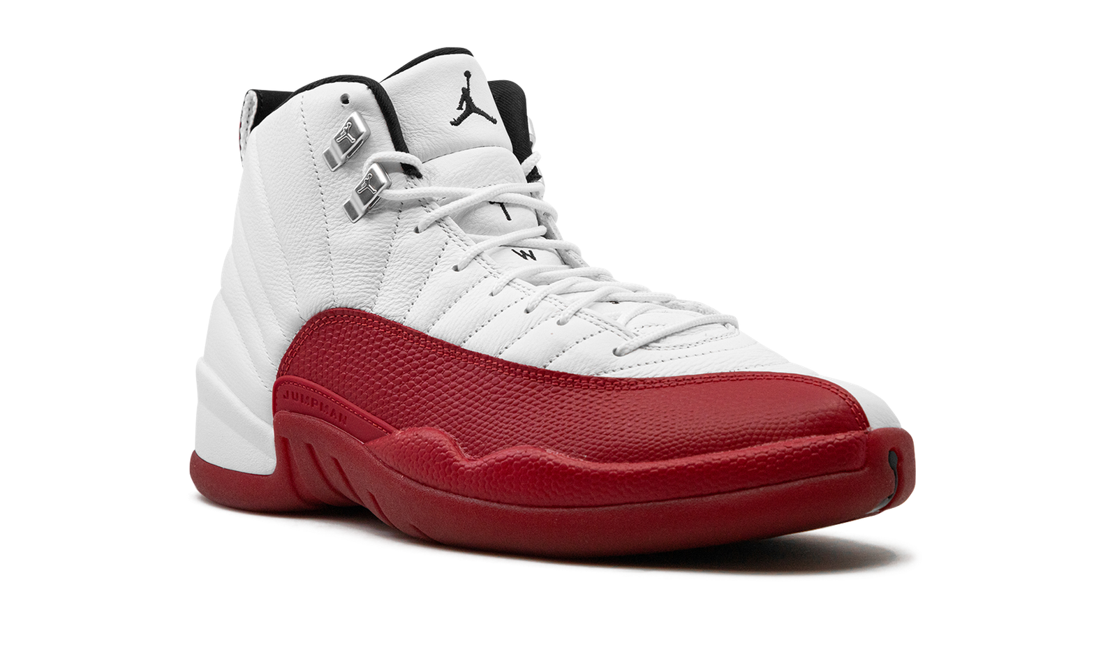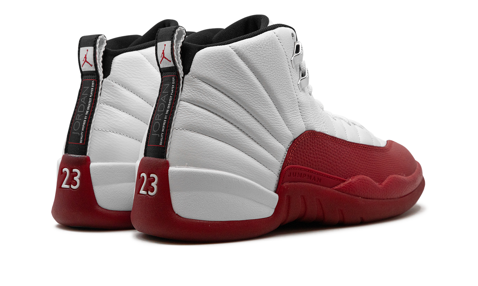 The Air Jordan 12 “Cherry” is the re-release of an original colorway of Michael Jordan’s twelfth signature shoe that debuted in 1997. Worn by Jordan with the Chicago Bulls throughout the NBA’s 1996-97 regular season, the Jordan 12 “Cherry” is one of the most popular and iconic Jordan models of all time. The 2023 version of the shoe remains faithful to the original style from ‘97. It features a white leather construction with a Varsity Red textured mudguard/toe panel that spills onto the midsole. Silver eyelets and black Jumpman and “Two 3” detailing are found on the collar and tongue, respectively. Release date: October 28, 2023