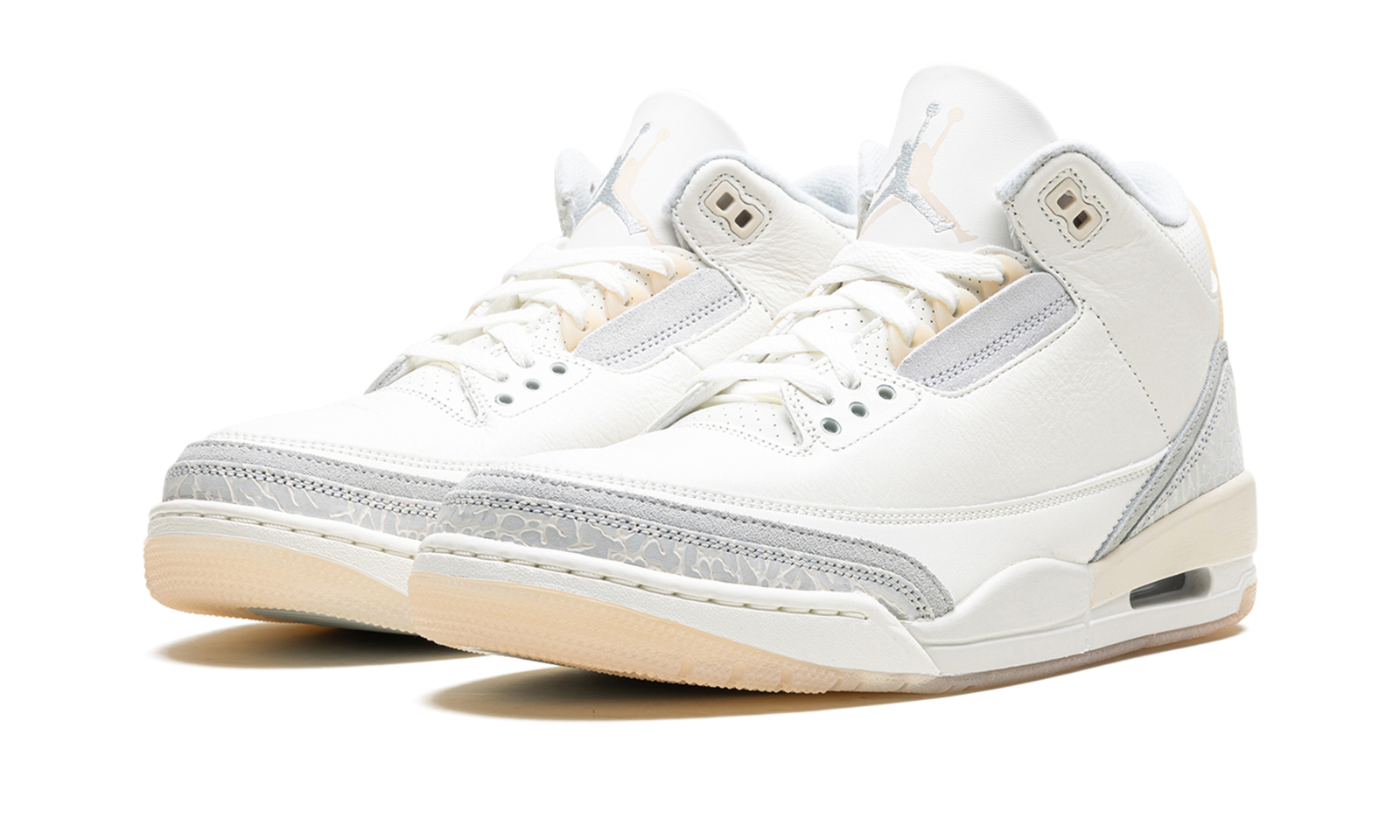 The Air Jordan 3 Craft “Ivory” is a modified construction of the retro basketball shoe with a versatile and timeless colorway. The Jordan 3 Craft updates the legacy sneaker with premium materials for a lifestyle-ready design. Grey Mist leather forms the base of the shoe while grey elephant print overlays appear on the toe and heel. The heeltab features a unique treatment by incorporating a “Nike Air” logo underneath the clear TPU piece with a molded Jumpman logo. The toe and heel panels are modified with a grey suede panel bordering the Jordan 3’s standard elephant print panels. Extra suede detailing is also added to the eyestay area. A cream-colored rubber midsole and translucent rubber outsole complete this refined Air Jordan 3. Release date: March 2, 2024