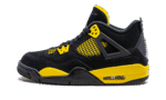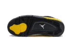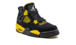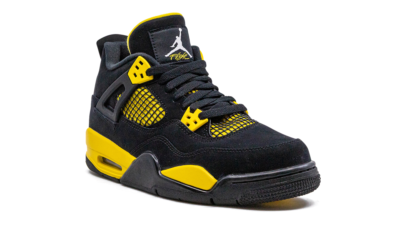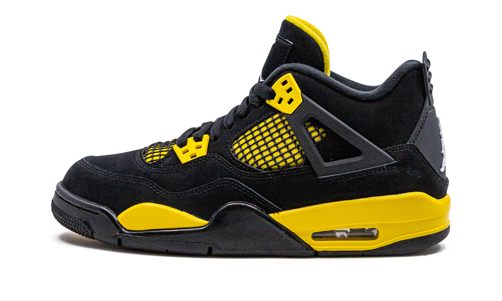 The Air Jordan 4 GS “Thunder” is the youth sizing of the modern re-release of the popular, non-original colorway of the retro basketball shoe that debuted in 2006’s “Thunder & Lightning” collection. Released with the Jordan 4 “Lightning” in super limited quantities on Jordan Brand’s former Jumpman23.com website in the mid-aughts, the “Thunder” was brought back in 2012 before it received another highly anticipated release in 2023. As for its design, the black-and-yellow shoe features a black synthetic nubuck base with Tour Yellow detailing beneath the mesh on the sides and tongue. Yellow “wings” lace holders contrast the black upper. A white Jumpman appears on the heel and on the tongue. A visible Air unit in the heel puts the finishing touches on the Air Jordan 4 “Thunder.” Release date: May 13, 2023