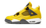 The Air Jordan 4 “Lightning 2021” is a modern re-issue of the desirable colorway of Michael Jordan’s fourth signature shoe that was originally released in August 2006. Without question one of the most sought-after non-original Air Jordan shoes ever, the first “Lightning” was released in hyper-limited quantities exclusively on Jumpman23.com (the former Jordan Brand website) alongside a “reverse” black and yellow “Thunder” Jordan 4, together creating the “Thunder & Lightning” pack. The “Lightning” was accompanied by an Air Jordan “Flight” T-shirt and the “Thunder” was paired with a varsity jacket. In 2012, Jordan Brand brought back the “Thunder,” but curiously decided against releasing the “Lightning.” 15 years after its debut, the “Lightning” returned in near true-to-original fashion. Like the OG, the modern incarnation of the “Lightning” features Tour Yellow nubuck on its upper with black mesh on the tongue and mid-panel. Grey “wings” and black eyelets contrast the yellow look. Elsewhere, white Jumpman branding appears on the nylon tongue tag and a black Jumpman graces the back of the shoe. Jordan Brand opts for a slightly lighter grey rubber outsole than that of the unit found on the original “Lightning” from 2006. Release date: August 28, 2021
