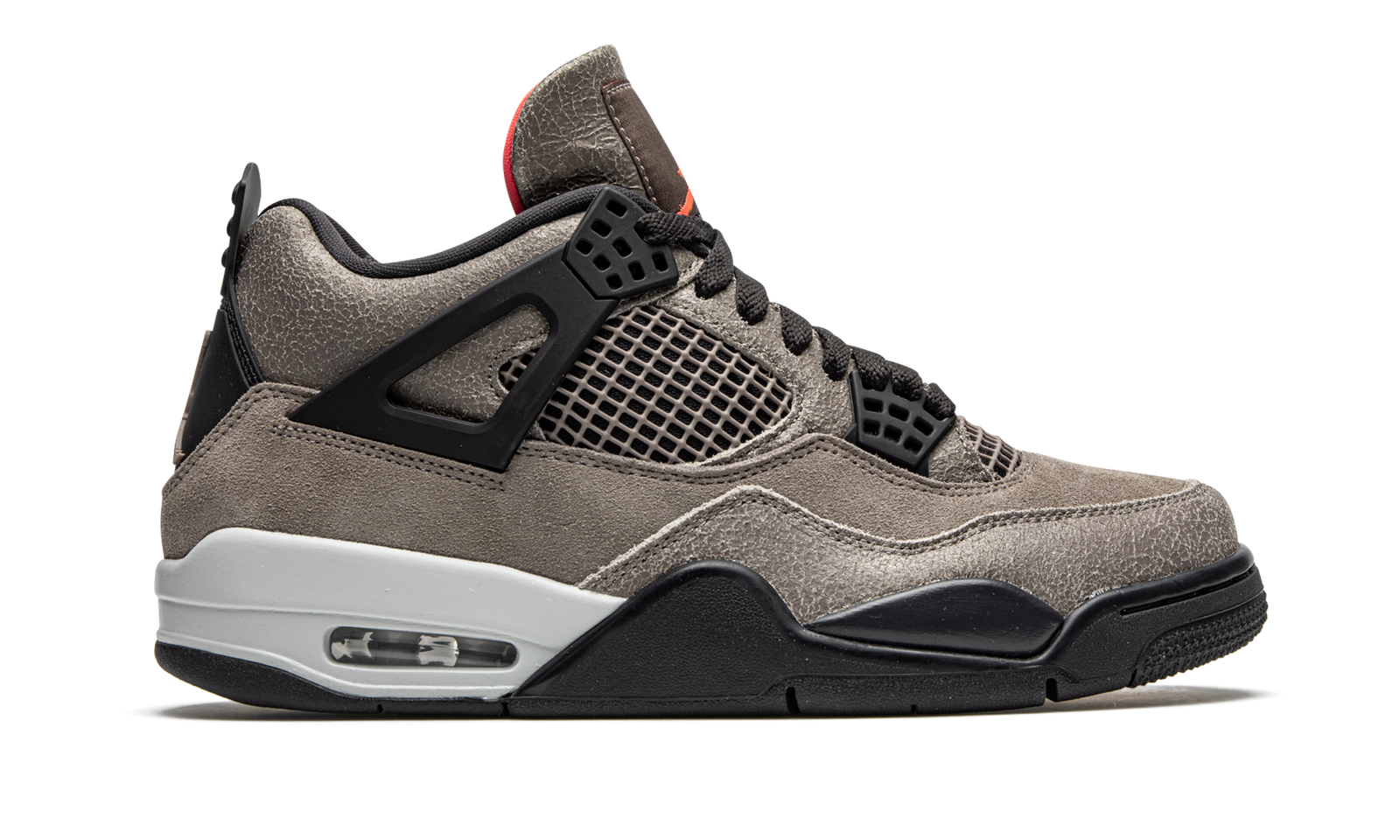 The Air Jordan 4 “Taupe Haze” is a lifestyle colorway of Michael Jordan’s fourth signature shoe that was released by Jordan Brand in January 2021. The “Taupe Haze” is highlighted by its neutral based, earth tone color palette. Black plastic “Wings” eyestay holders match the tonal shoelaces and mesh detailing on the tongue and mid-panel. Jordan Brand places a taupe Jumpman logo on the back of the shoe and a blazing red Jumpman on the branding tag stitched onto the tongue. The same bright shade of red appears on the underside of the tongue and on the Jumpman-branded insole. A visible Air unit can be found in the heel of the Air Jordan 4 “Taupe Haze” to finish off the look. Release date: February 27, 2021
