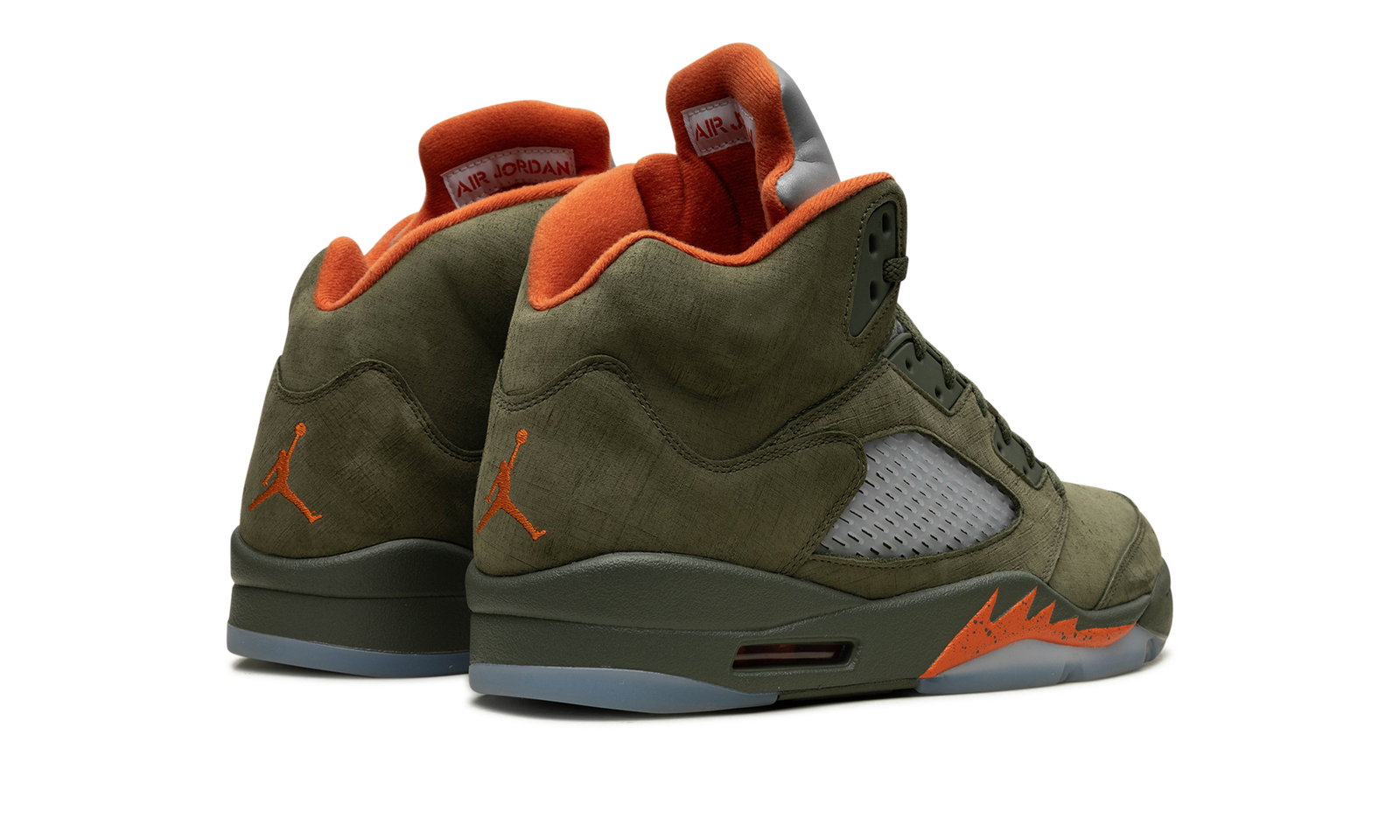 The Air Jordan 5 “Olive” is the modern re-release of the colorway of Michael Jordan’s fifth signature shoe that first released in 2006. An early lifestyle version of the Jordan 5, the “Olive” colorway was released in the mid-2000s before it was brought back for the first time in 2024. The contemporary version of the shoe is identical to the original style from ‘06. The shoe features an Olive suede construction with translucent netting on both the mid-panel and on the tongue. A Solar Orange Jumpman appears on the silver reflective tongue and on the heel. Additional orange accenting is seen on the inner lining and on the shark tooth detailing on the forefoot of the olive midsole. An icy blue translucent rubber outsole completes the look. Release date: March 9, 2024