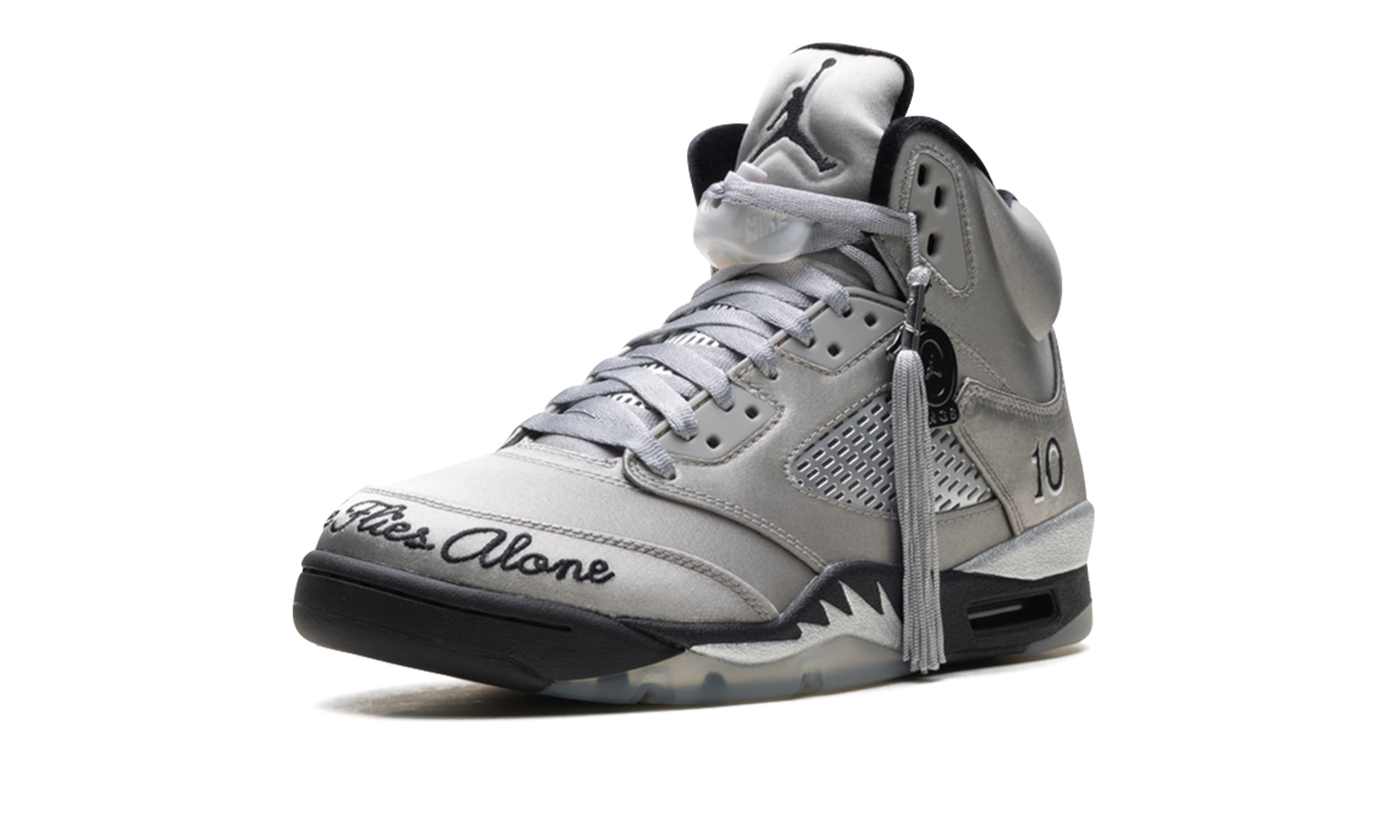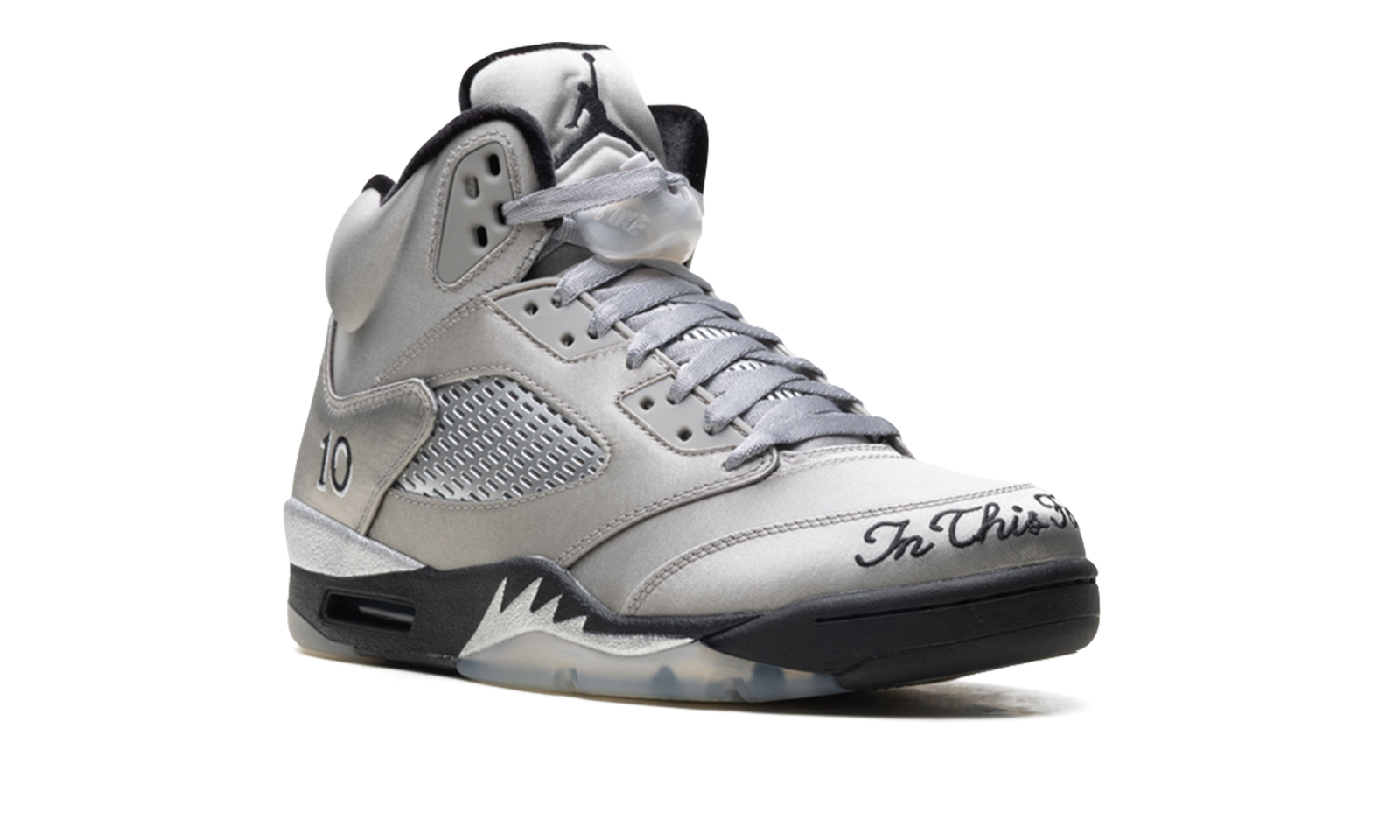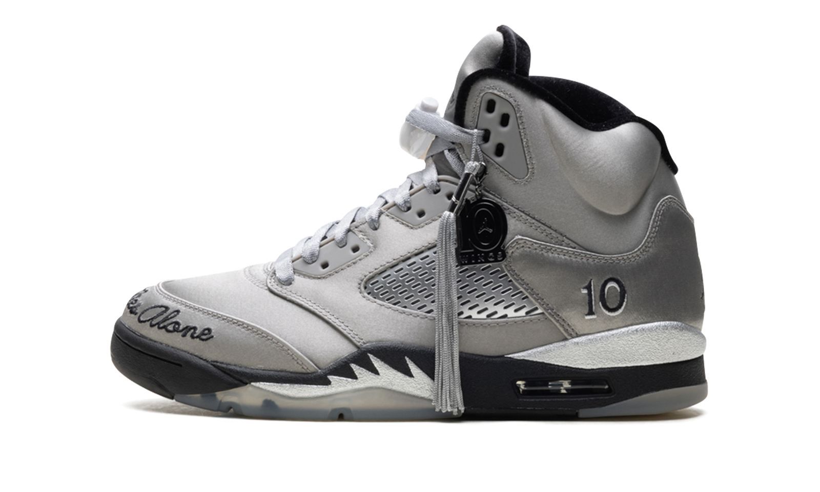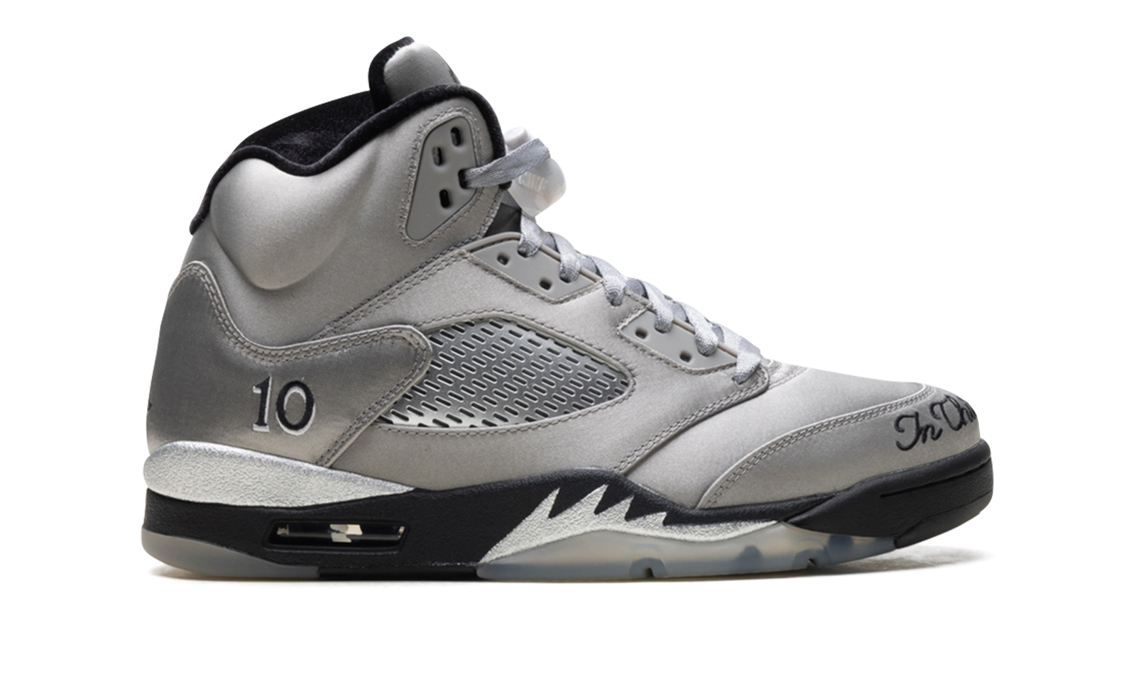 Fly high with the Air Jordan 5 Retro WMNS “Wings (2025).” This women’s-exclusive sneaker celebrates the 10th anniversary of the Jordan Brand Wings scholarship program. It features a stunning Metallic Silver satin upper, accented by black detailing, and the iconic AJ5 design elements. Special nods include “In This Family No One Flies Alone” text on the toe and a unique hand-print graphic on the translucent outsole, blending luxury with a powerful mission.