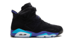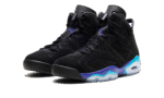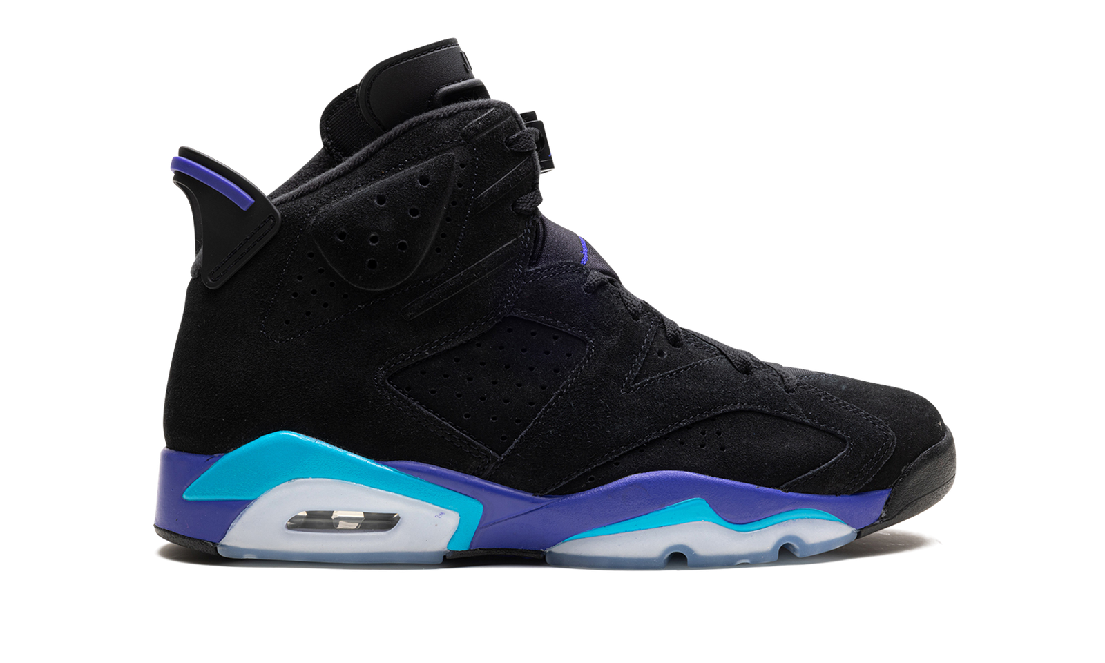 The Air Jordan 6 “Aqua” is a colorway of Michael Jordan’s sixth signature shoe inspired by an iconic Air Jordan design. The shoe in question is the Air Jordan 8 “Aqua,” an original colorway of the retro basketball sneaker that was worn by Jordan during the 1993 NBA All-Star Game. Jordan Brand transfers the Jordan 8 “Aqua’s” color scheme onto the Jordan 6 by featuring the shoe’s Bright Concord and Aquatone accents on the midsole. The upper features a black synthetic nubuck construction with tonal overlays. A Bright Concord Jumpman is embroidered on the tongue while a teal Jumpman is seen on the purple lace toggle. On the back of the shoe, a black spoiler with Aqua accents completes the look. Release date: October 7, 2023