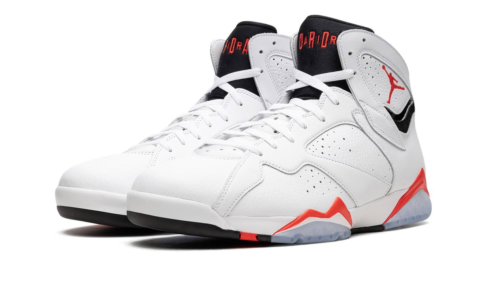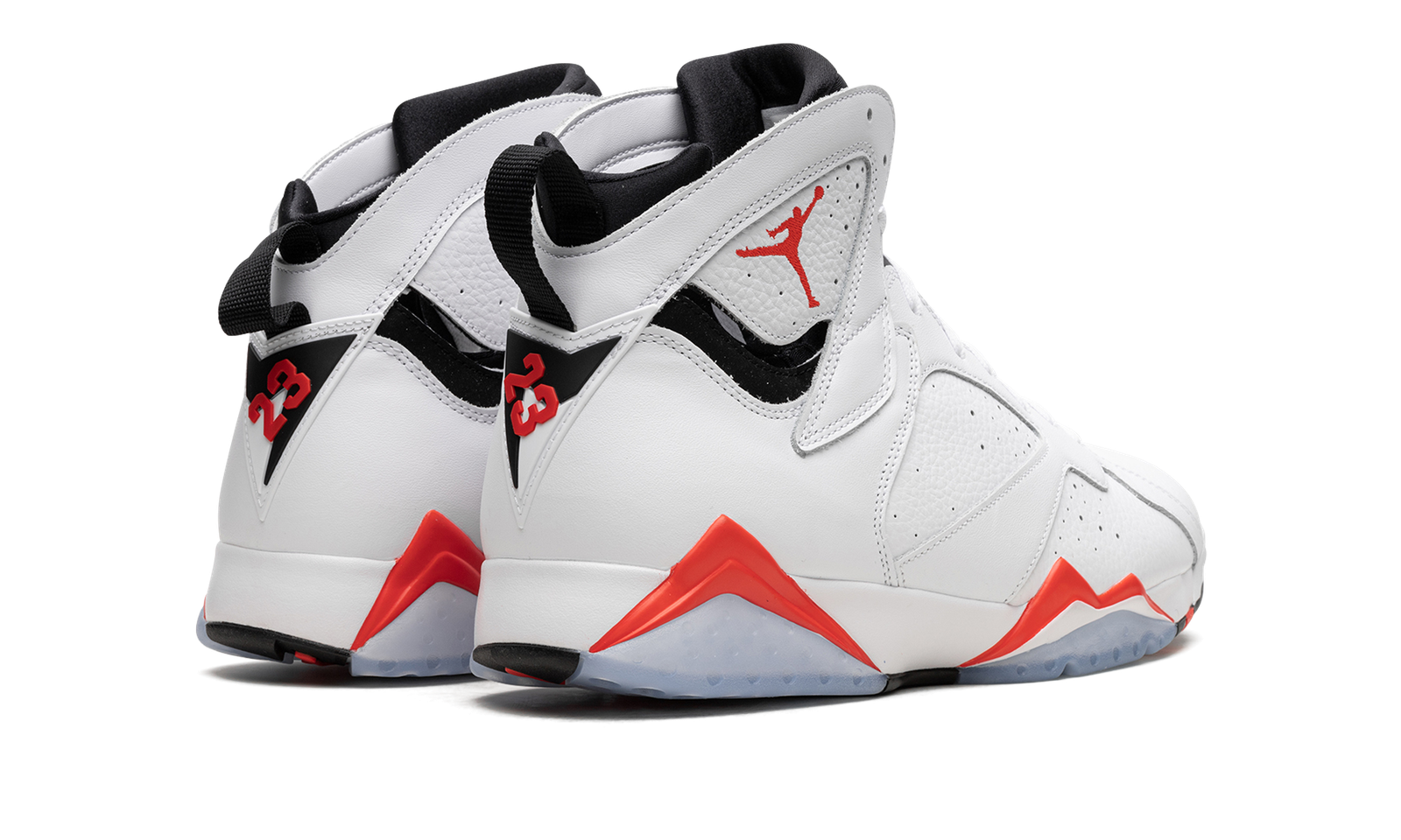 The Air Jordan 7 “White Infrared” is a colorway of Michael Jordan’s seventh signature shoe that borrows an original color scheme of the Air Jordan 6. The “White Infrared” Jordan 7 references the Air Jordan 6 of the same nickname. The shoe features a white leather upper with tonal leather overlays. An Infrared Jumpman is embroidered on the collar and Infrared “23” branding appears on the heel. Additional Infrared accenting comes into play on the midsole and icy clear rubber portions of the outsole add the final nod to the original Jordan 6 colorway. Release date: June 30, 2023