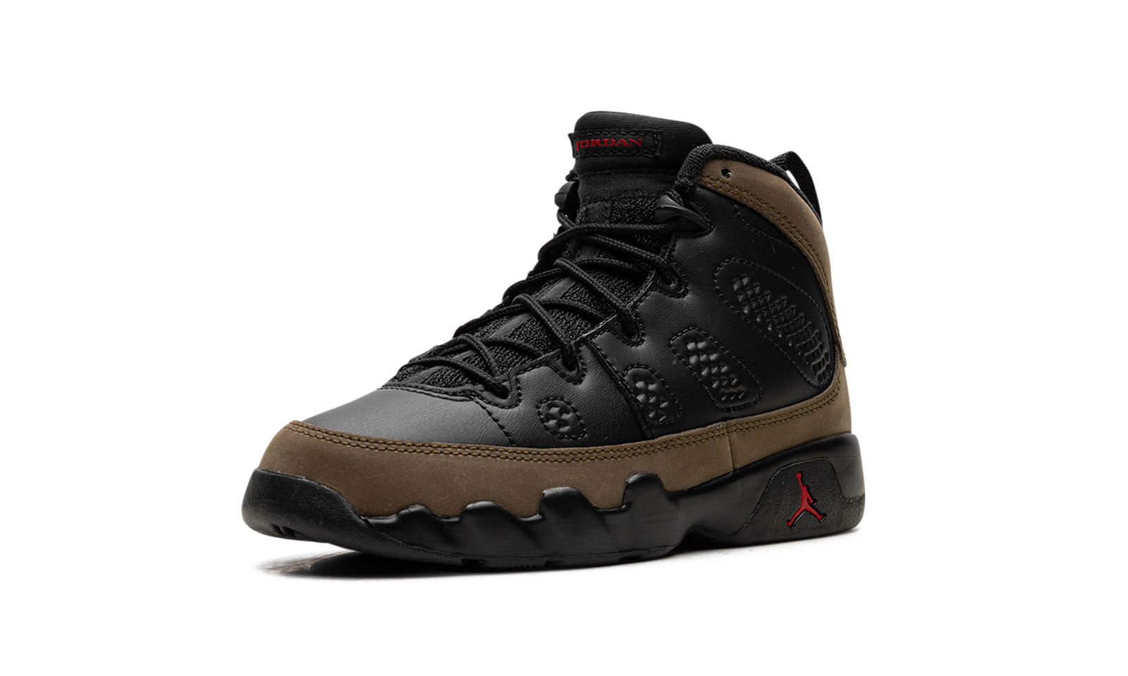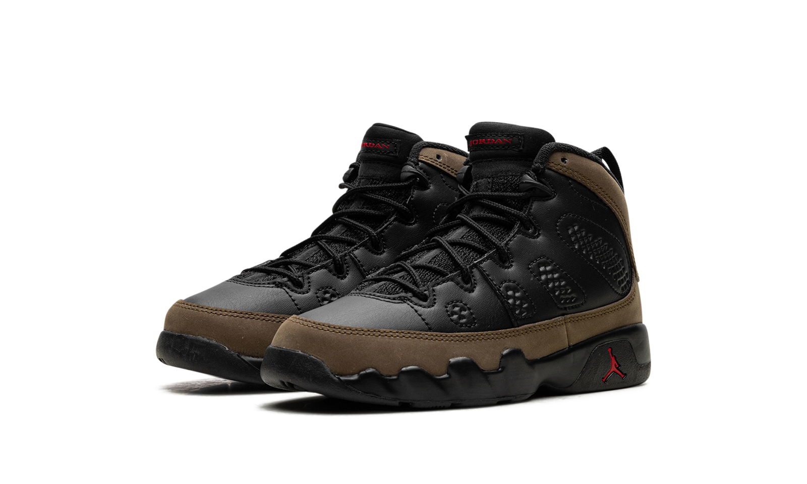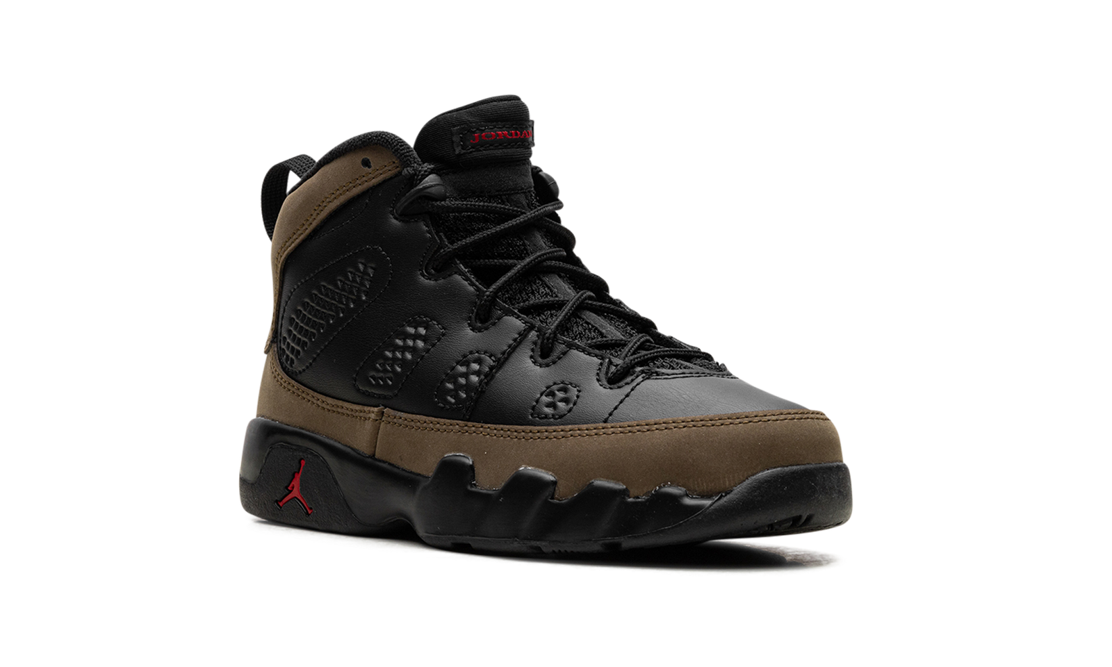 The Air Jordan 9 PS “Olive 2024” is the preschool sizing of the 2024 reissue of an original colorway of Michael Jordan’s ninth signature shoe. The Jordan 9 “Olive” was designed by legendary Nike shoe designer Tinker Hatfield and released in 1994. It is regarded as one of the most popular colorways of the Jordan 9. On the 2024 re-release, Jordan Brand brings back the shoe’s original styling, much to the delight of sneaker collectors. The upper features a black leather construction with Light Olive suede on the mudguard, collar, and heel. Varsity Red “Air Jordan” branding appears on the tongue, and a Varsity Red Jumpman can be found on the lateral side of the black midsole. Additional Varsity Red detailing appears in the form of a “globe” on the heel, and an oversized Jumpman on the black rubber outsole. Release date: October 25, 2024