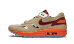 Net/deep red/orange blaze leather/rubber Air Max 1 sneakers from NIKE featuring round toe, flat rubber sole, front lace-up fastening, branded insole, signature Swoosh logo detail and perforated toebox. These styles are supplied by a premium sneaker marketplace. Stocking only the most sought-after footwear, they source and curate some of the most hard to find sneakers from around the world..