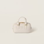This Arcadie leather bag expresses a notion of fashion as a means of translating a reaction to current reality into material form. The light padding gives the bag a voluminous look and a cosmopolitan style. The lettering logo, which echoes the finishes of the metal hardware, crosses the boundaries between function and decoration and helps to define the distinctive and iconic aesthetic of the top-handle bag.