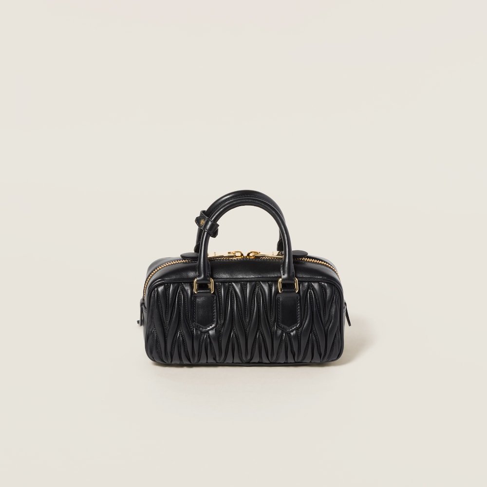 Precious matelassé workmanship revisits the classic silhouette of the top-handle bag thanks to its three-dimensional, textured, and extremely sophisticated effect. The lettering logo on the front that echoes different metallic finishes of the hardware stands out against the artisan motif with an iconic and immediately recognizable touch. The dynamic and elegant lines and the adjustable, detachable shoulder strap contribute to the versatile, functional and modern design of the bag.