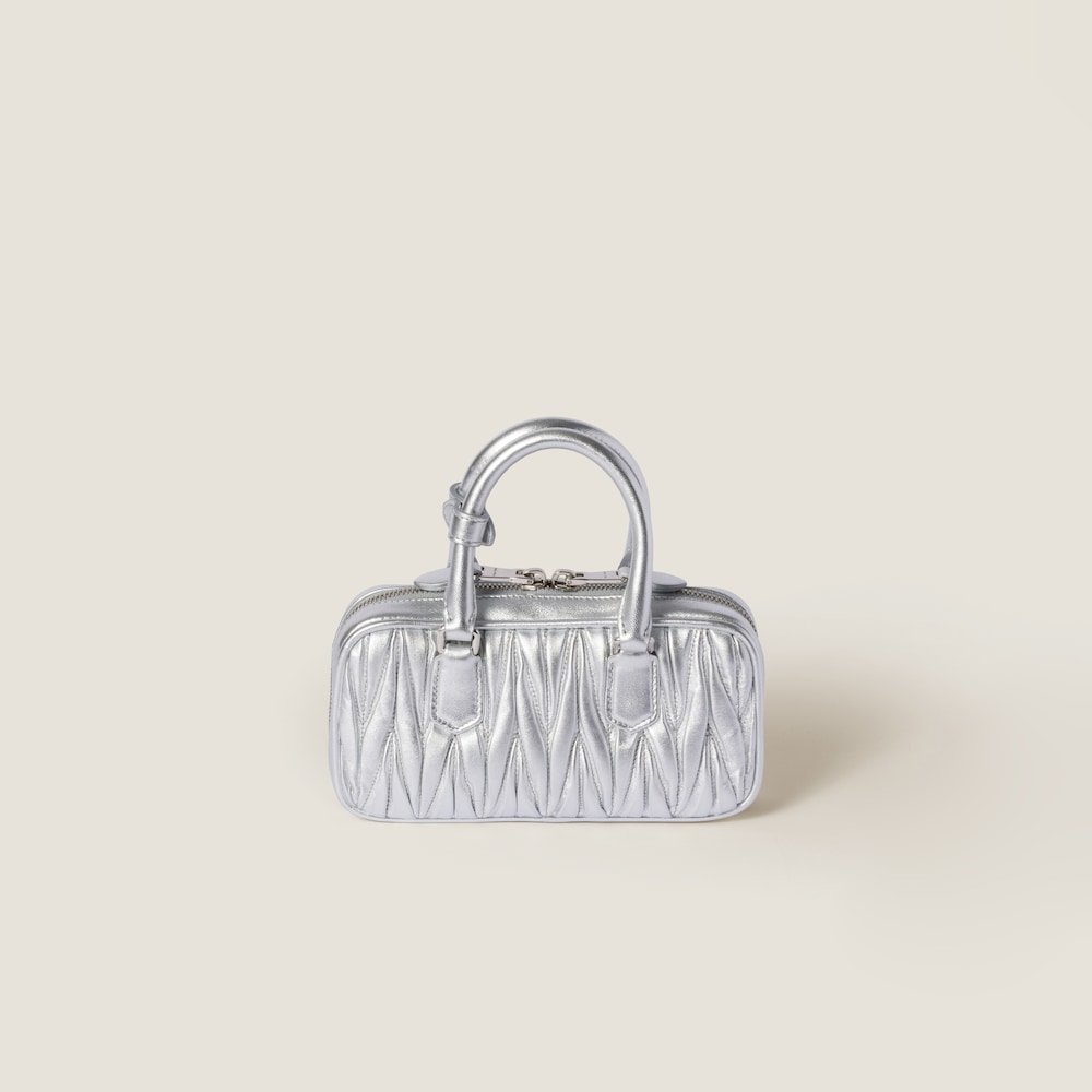 Fine matelassé workmanship reinterprets the classic silhouette of the top-handle bag, giving it a three-dimensional, textured, and extremely sophisticated effect. The lettering logo on the front, which echoes the finish of the metal hardware, stands out against the refined artisan workmanship with an iconic and immediately recognizable touch. The dynamic and elegant lines of this mini format and the detachable, adjustable shoulder strap contribute to the versatile, functional, and modern design of the bag.