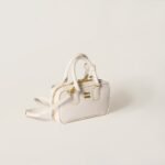 The top-handle silhouette of the Arcadie bag is enhanced by the shine of patent leather in this version, which combines vintage experimentation and Miu Miu’s glamorous essence.