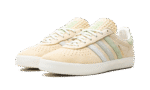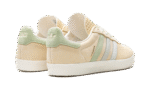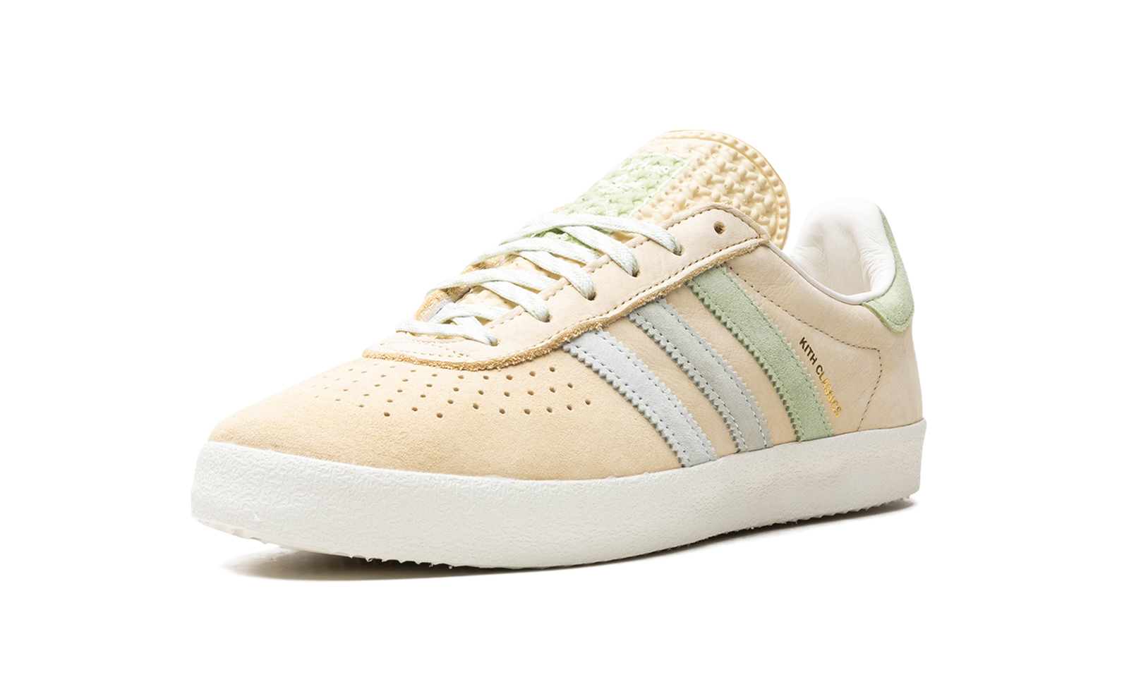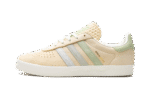 The Kith x adidas AS350 “Classics Program – Arctic Fusion” is a collaboration between Ronnie Fieg’s sneaker boutique and adidas on the classic shoe. The adidas AS350 is a retro that was originally made strictly for the Japanese market in the late 1970s and early 1980s. The model returned via collaborations with Kith in 2024. The “Arctic Fusion” colorway has a Pale Yellow leather construction with gradient blue and green suede Three Stripes on the sides. A gold “Kith Classics” logo is stamped on the lateral side of the shoe, and “Kith” and “adidas” logos appear on the left and right heel tab, respectively. A white vulcanized rubber sole completes the look.