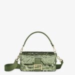 Hand-embroidered with green sequins of different shapes and sizes. Embellished with tone on tone calfskin details and decorated with an FF clasp.
