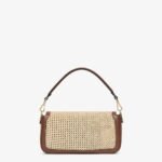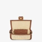 Made of natural-colored macramé. Trimmed in brown calfskin and embellished with an FF clasp.
