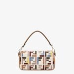 Made of natural-colour canvas with a raised FF motif embroidered in multicolour yarn and decorated with an FF clasp. Embellished with cappuccino-coloured leather details.