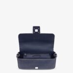 Iconic medium Baguette bag, made of midnight blue Cuoio Romano leather embellished by hand with tone on tone stitching. Decorated with an FF clasp.