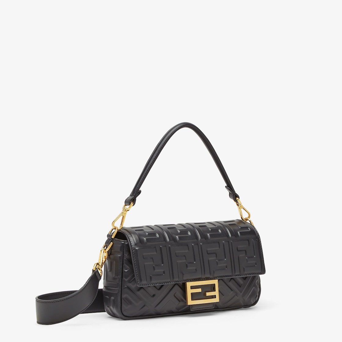 Made of a particularly soft and hard-wearing, black calfskin with a 3D-effect, embossed iconic FF motif. Decorated with an FF clasp.