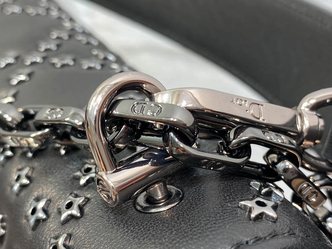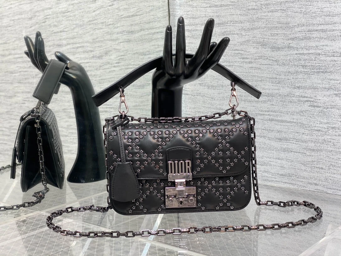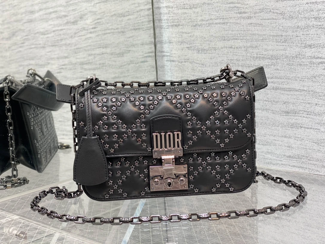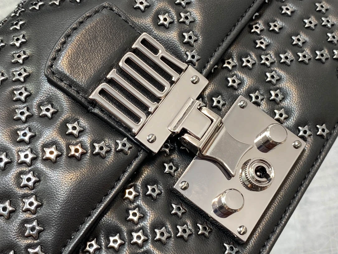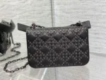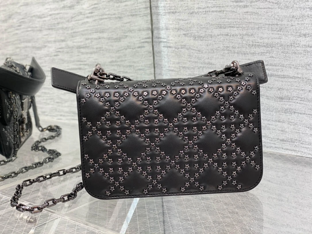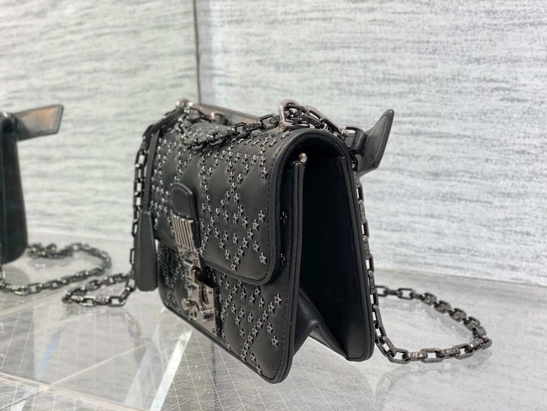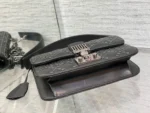 Black Cowhide Hollow Oblique Printed Bucket Bag Size 22cmx16cm