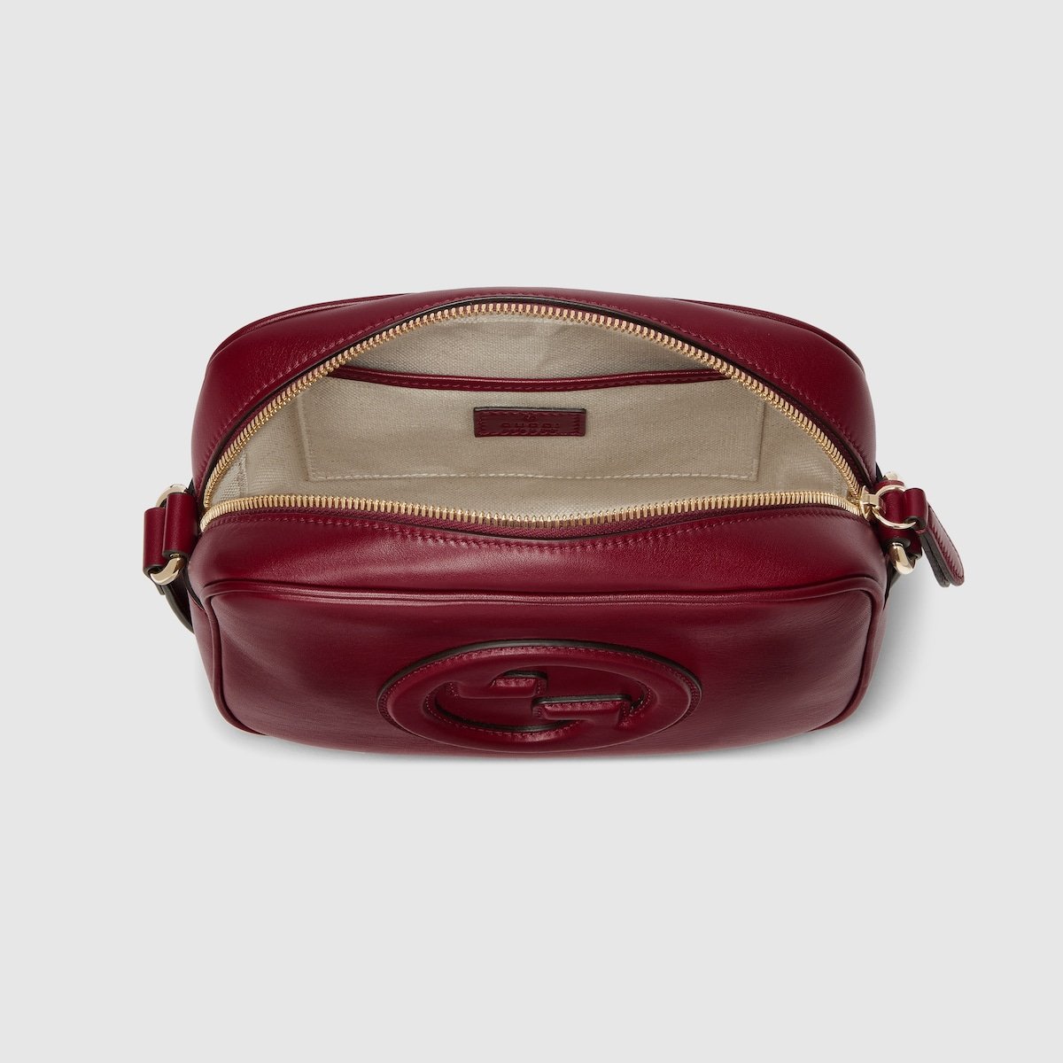 The new Gucci Blondie bag, whose distinctive logo first appeared in the House??s collections in the early 1970s, weaves together past and present in a fusion of nostalgia and modernity. This mini shoulder bag is crafted from Gucci Rosso Ancora red smooth leather, and can be worn crossbody with an adjustable leather strap.