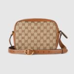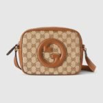 The new Gucci Blondie bag, whose distinctive logo first appeared in the House??s collections in the early 1970s, weaves together past and present in a fusion of nostalgia and modernity. This mini shoulder bag is crafted from beige and dark brown GG canvas, and can be worn crossbody with an adjustable leather strap.