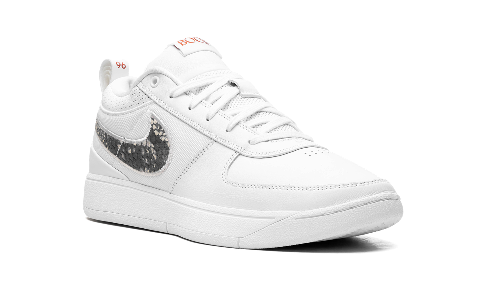 The Nike Book 1 “Rattlesnake” is a colorway of Devin Booker’s first signature shoe with Nike Basketball inspired by the basketball star’s reptile encounter on a hike. The “Rattlesnake” theme is derived from a snake sighting during Booker’s hike with his dog Haven one summer. As for the design more specifically, the upper has a White leather and canvas construction with faux snakeskin Swoosh logos inspired by Booker’s snake encounter. “Book” branding appears on the tongue tag, while “Chapter One” and “‘96” logos can be found on the outside and inside of the heel pull tab, respectively. Release date: May 11, 2024