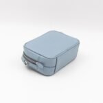 A Prada crossbody camera bag in light blue saffiano leather. This small sized bag has a removable shoulder strap for comfortable crossbody use. Great for daily use for your phone, cards, and keys. Inside has two slim pockets. On front a silver Prada logo on a lovely bow. Inside fits a phone with max length is 14 cm.